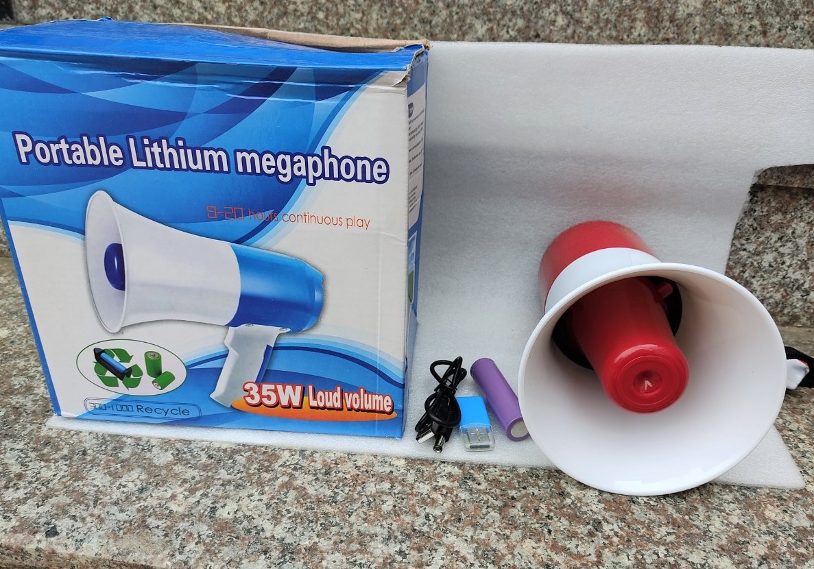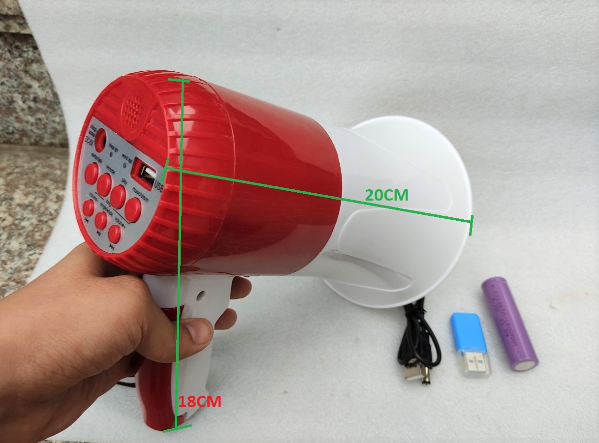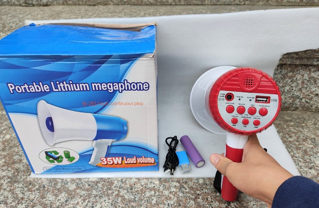Hiện tại các sàn cho khách hàng được TRẢ HÀNG HOÀN TIỀN TRONG 3 - 7 NGÀY KỂ TỪ KHI NHẬN.   TUY NHIÊN KHÔNG CHO ĐỒNG KIỂM KHI NHẬN , đây là quy định của SÀN shop không thể can thiệp được , nên nếu bạn không đồng ý với quy định này thì vui lòng cân nhắc và quay lại khi đã hiểu và đồng ý với quy định này. và nên quay video mở gói hàng cùng nhân viên giao.   ĐÔNG DƯƠNG AUDIO Với kinh nghiệm gần 5 năm bán hàng trên các sàn thương mại điện tử, chúng tôi đã tạo được sự uy tín nhất định trong lòng các tín đồ âm thanh. Chúng tôi chuyên cung cấp : các linh kiện củ loa rời, sub, bass loa full, trép , phân tần, vang karaoke, đẩy công suất….vv. ở mức bình dân, giá từ vài chục ngàn cho đến 5tr Rất nhiều mẫu mã và chủng loại.   Loa phóng thanh lithium chuyên nghiệp Áp dụng công nghệ chuyển đổi điện từ hiệu quả cao, tiêu thụ điện năng thấp, Công suất lớn Âm thanh to, rõ ràng và khả năng xuyên thấu cao, Áp dụng thiết kế chống bụi và chống ẩm, chất lượng đáng tin cậy và tuổi thọ sử dụng lâu dài. Áp dụng mô-đun kỹ thuật số CLASS - D, tiêu thụ điện năng thấp, hiệu quả cao Sử dụng pin lithium bền dung lượng cao, pin bền hơn. Sử dụng ổ cắm sạc pin lithium bên ngoài, sạc thuận tiện hơn. Bộ sản phẩm đi kèm bao gồm : 1 thân loa. 1 pin , 1 cáp sạc , 1 đầu lọc thẻ Sạc: cắm sạc 5v ( vào đock sạc của điện thoại. Khi sạc, không thể đảo ngược pin, thời gian sạc 3-7 giờ. 1500mA --- Khi pin đang sạc, đèn báo bộ sạc màu đỏ, khi đầy đèn báo chuyển sang màu xanh. Dung lượng pin là 1800mA   Kích thước sản phẩm : mặt 13cm x sâu 20cm x cao( tính cả tay cầm) 18cm. Thời lượng sử dụng : 9 - 20 tiếng Công suất tối đa : 35w Lưu ý khi ghi âm : để miệng sát đầu thu âm và nói. hệ thống phát tự động lặp lại.   CÁCH SỬ DỤNG : nhấn 1 lần nút switch/talk để mở và tắt. khi mở đèn sáng và mặc định ở chế độ phóng thanh,. tức là nói vào tự động phát. Nhấn nút DECORDE ( đèn sẽ nháy nháy ) là đang ở chế độ ghi âm. đặt sát miệng và thu âm. sau khi thu âm xong nhấn nút DECORDE 1 lần nữa để ngừng, sau đó nhấn nút PLAY để phát lại phần ghi âm.( nhấn và giữ nút tăng giảm âm lượng để điều chỉnh âm lượng ) . Lưu ý. để xóa hoặc ghi âm khác. vui lòng nhấn lại nút DECORDE. Các chức năng khác : báo thức.phát nhạc...vv