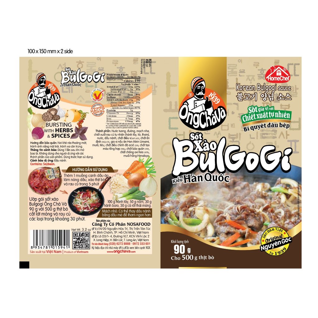 Sốt Xào Bulgogi Kiểu Hàn Quốc 90g của Ông Chà Và là dòng sản phẩm trong bộ sưu tập sốt/cốt tiện dụng của Nosafood, đây là sản phẩm tiện lợi với đầy đủ hương vị, chỉ cần ướp và nướng/xào là bạn đã có ngay món Bulgogi hấp dẫn để chiêu đãi gia đình và bạn bè.
