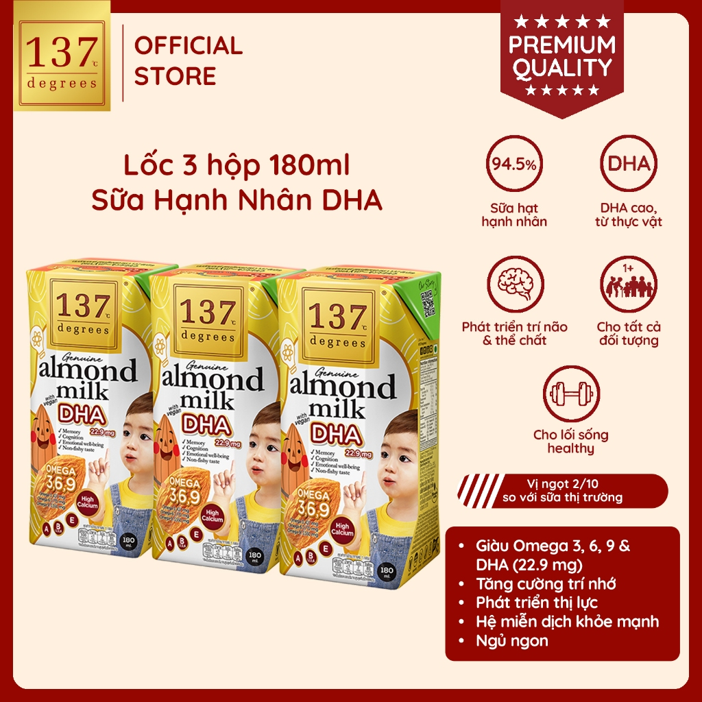 Lốc 3 hộp Sữa hạt Hạnh nhân DHA 137 DEGREES 180mlLốc 3 hộp Sữa hạt Hạnh nhân DHA 137 DEGREES 180mlLốc 3 hộp Sữa hạt Hạnh nhân DHA 137 DEGREES 180mlLốc 3 hộp Sữa hạt Hạnh nhân DHA 137 DEGREES 180ml