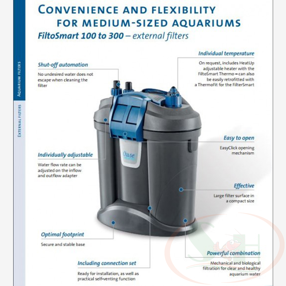 • Oase FiltoSmart đã bao gồm sẵn đầy đủ phụ kiện, bông lọc và vật liệu lọc cơ bản theo máy (không bao gồm sưởi).