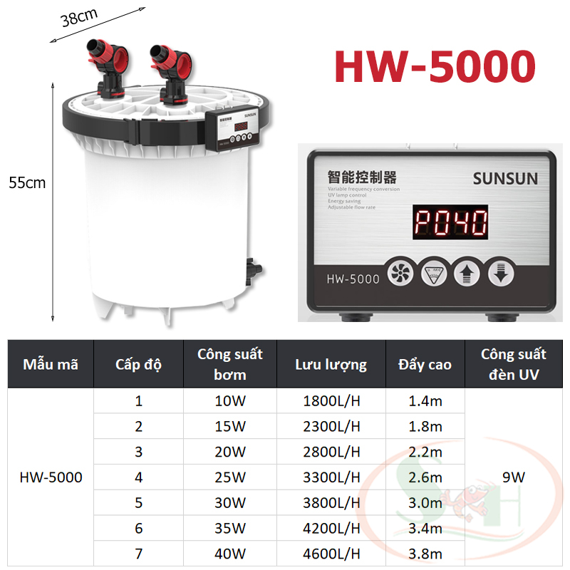 ✨Lọc thùng Sunsun Frequency HW ZW 3000, 5000 tích hợp UV bơm điện tử chỉnh dòng