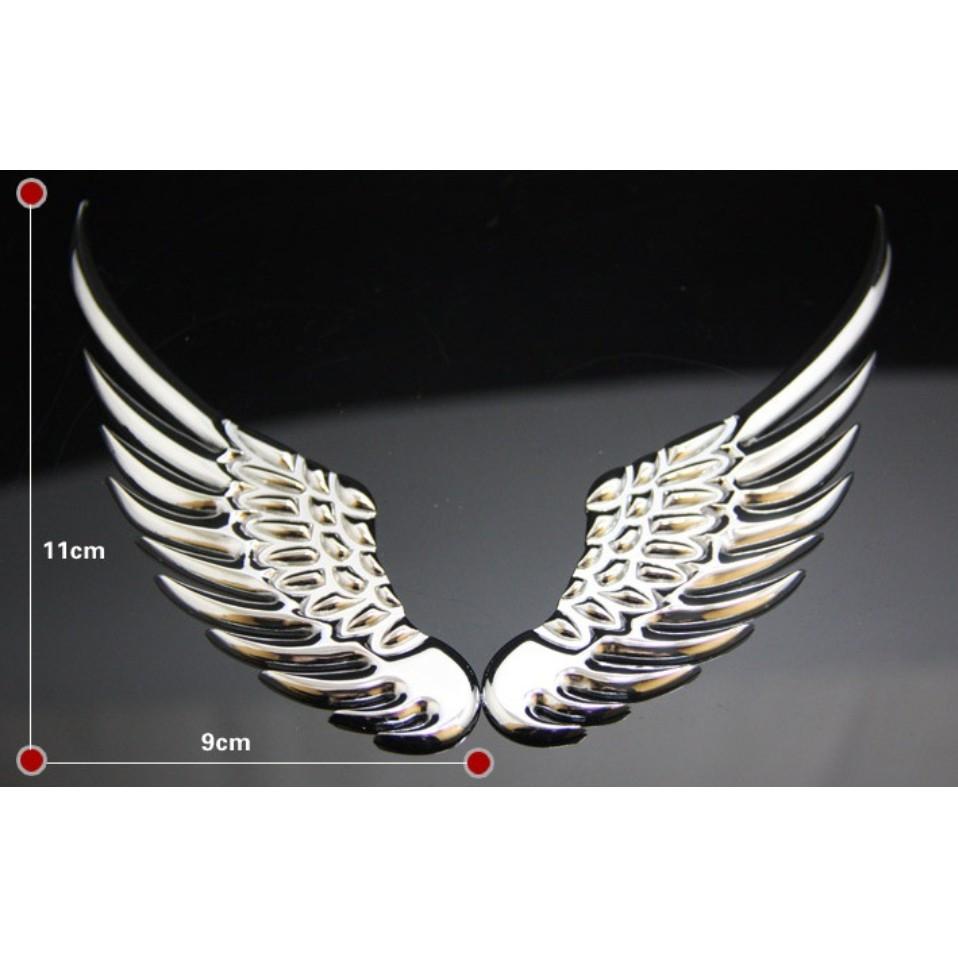 Bộ Decal tem 3D đôi cánh thiên thần kim loại dán trang trí logo ô tô