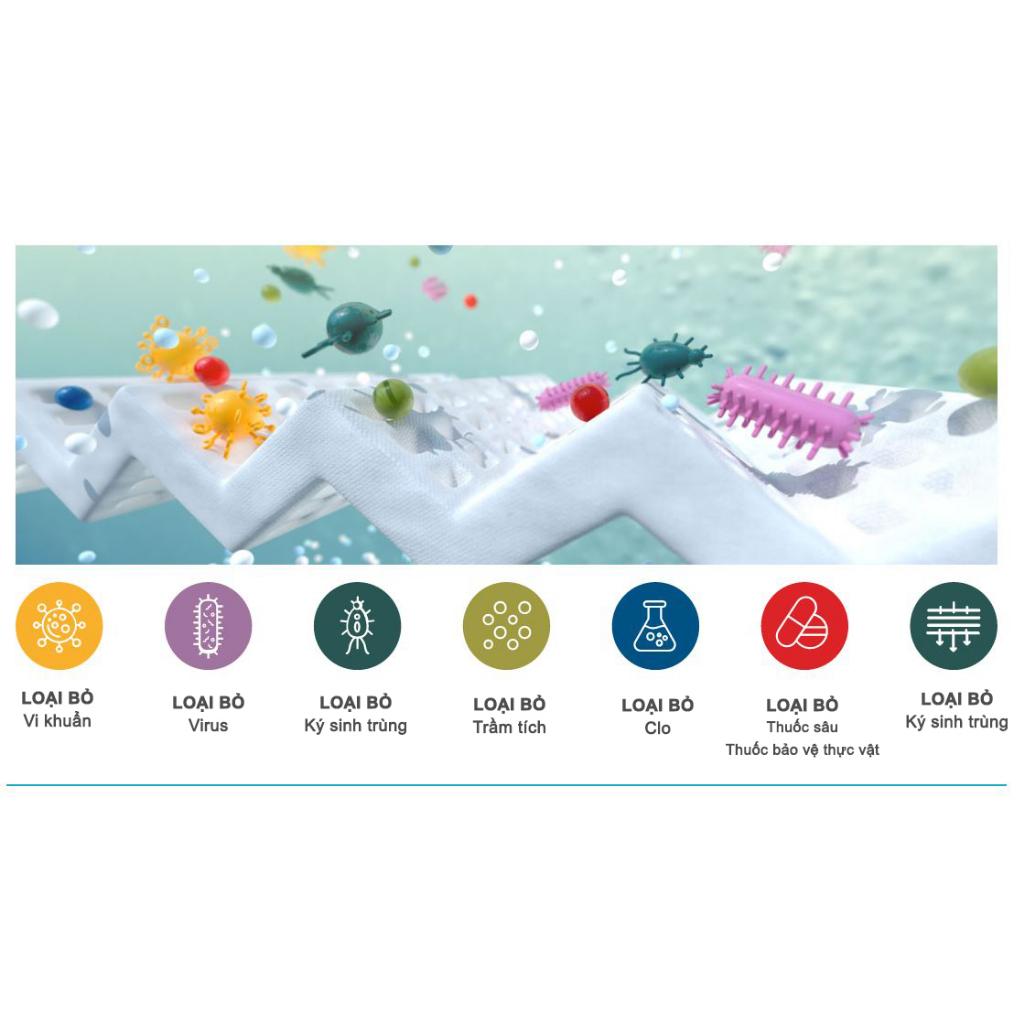 • Công nghệ lọc hấp thụ điện tử giúp loại bỏ 99,9999% vi khuẩn, virus & nhiều chất gây ô nhiễm khác.