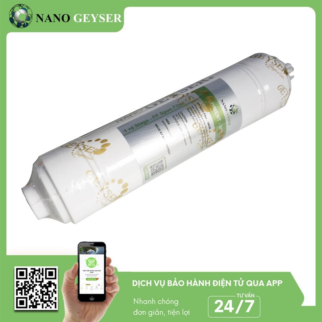 Lõi lọc Sediment Nano Geyser giúp loại bỏ các chất cặn bẩn, tỉ sét, bọ gậy, rong rê kích thước lớn hơn 5 micron Loại lõi lọc Sediment là loại lõi lọc thường ở các loại