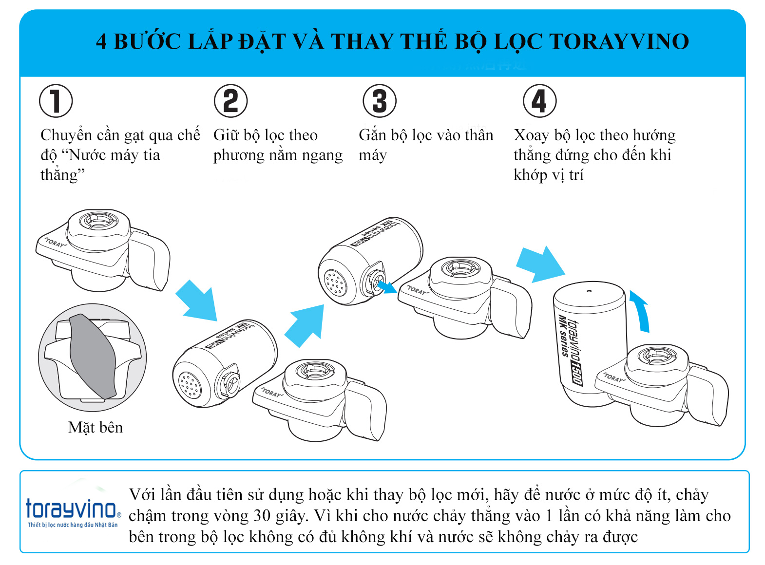 Thiết bị lọc nước tại vòi Torayvino là một trong những thương hiệu nổi bật của tập đoàn TORAY, với ứng dụng công nghệ màng lọc sợi rỗng an toàn tuyệt đối trong lĩnh vực y tế, được công ty sản xuất và phát triển từ hơn 30 năm qua. TORAYVINO hiện dẫn đầu thị phần thiết bị lọc nước tại vòi ở Nhật Bản với hơn 100 triệu chiếc vào năm 2017 và đã có mặt ở 22 quốc gia trên thế giới như Nhật Bản, Hoa Kỳ, Thụy Sỹ, Singapore...