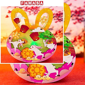 ✨Lồng Đèn Trung Thu Gỗ Mộc Màu : Thỏ Bánh - Bách Mộc 07 (Có Kèm Pin)