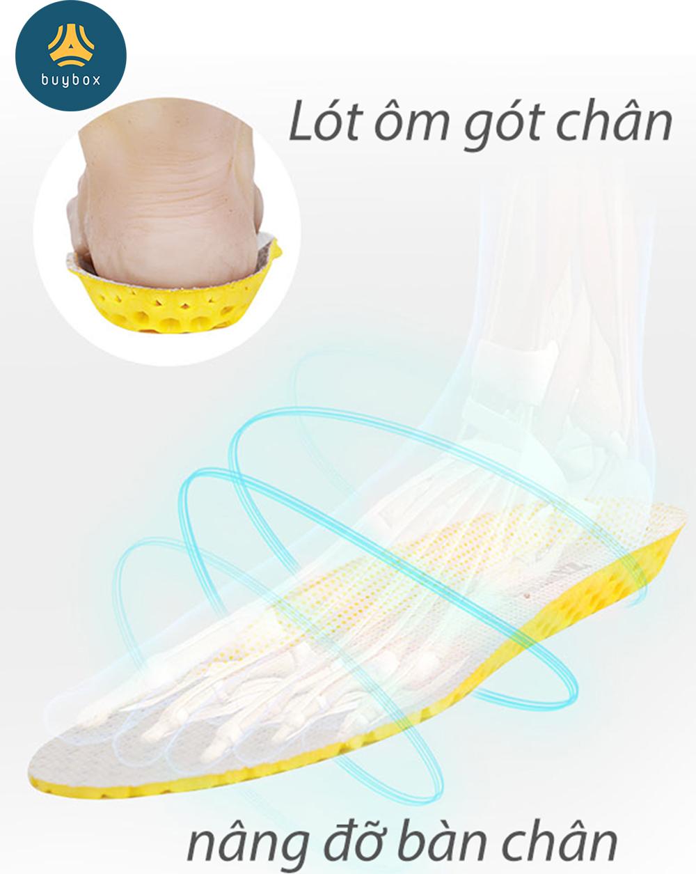 Lót giày thể thao được thiết kế vành dọc theo lót và bọc gót chữ U giúp lót giày ôm vào bàn chân.
