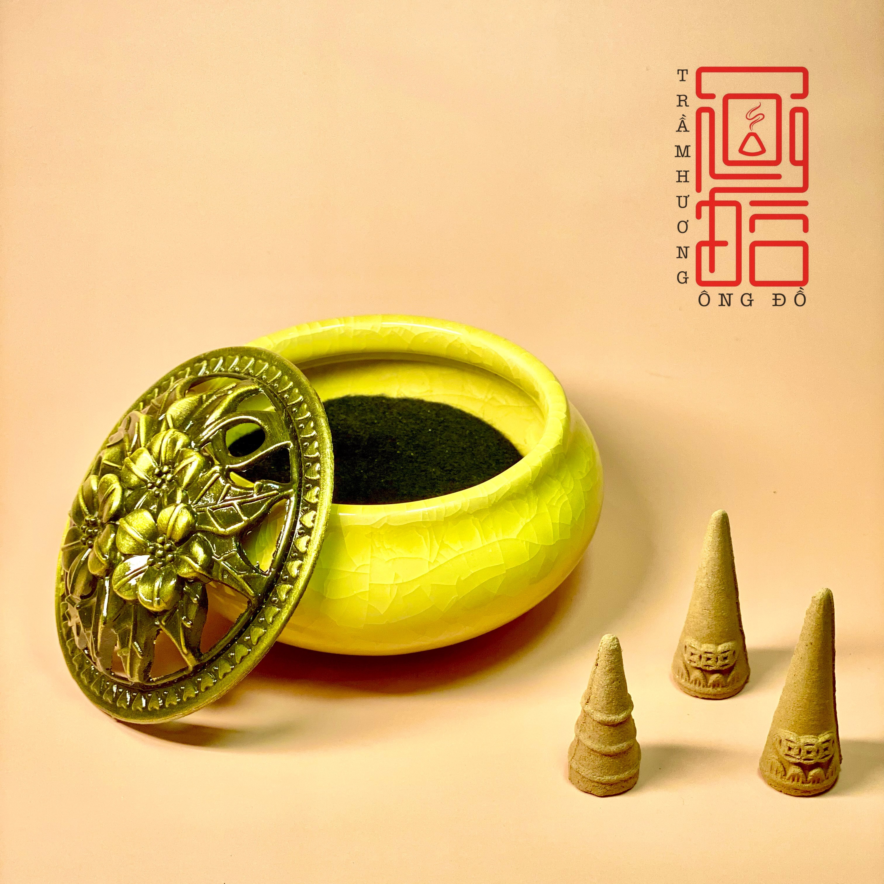 -Lư xông trầm bằng gốm có tấm lót chống nóng , chống ố vàng đáy lư , lư hương sứ kèm đế cắm được tất cả các loại nhang , giúp tạo ra bầu không