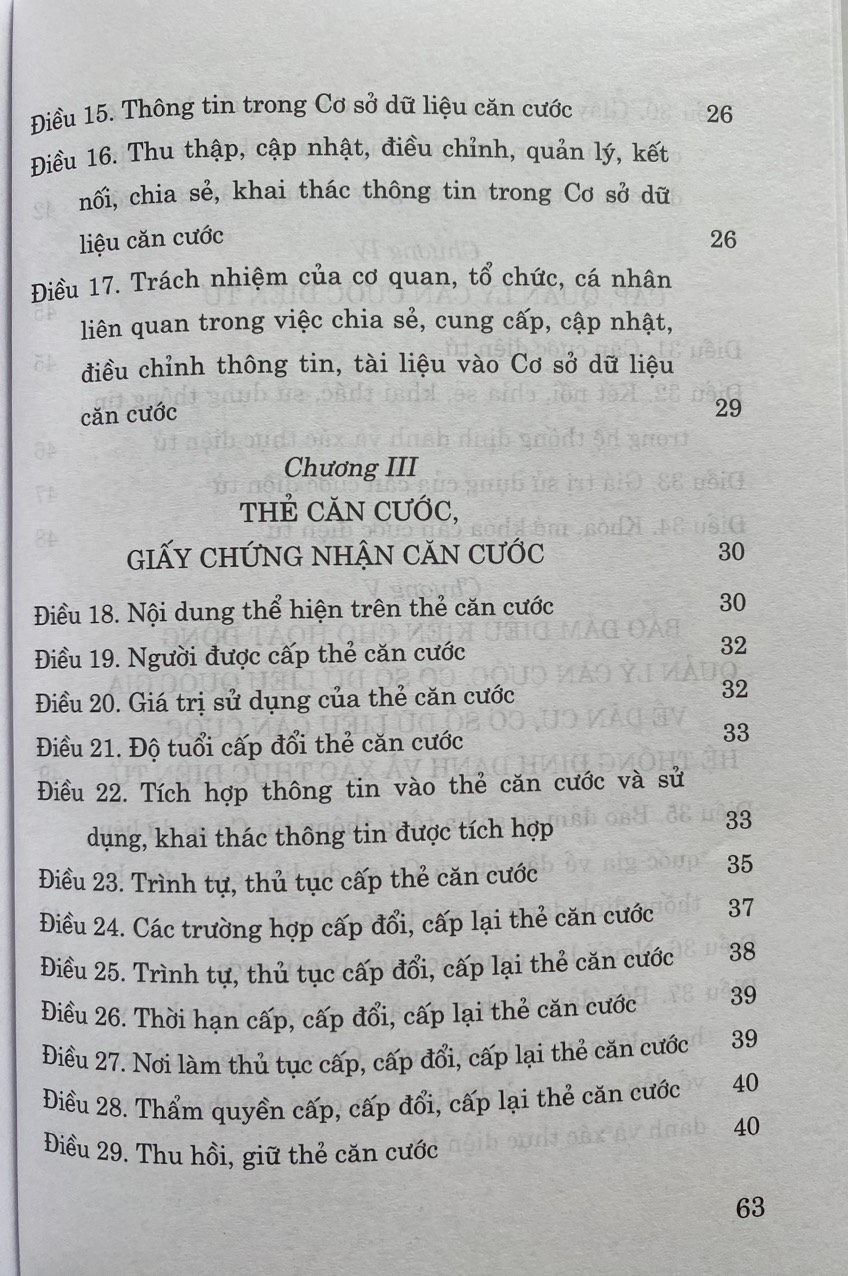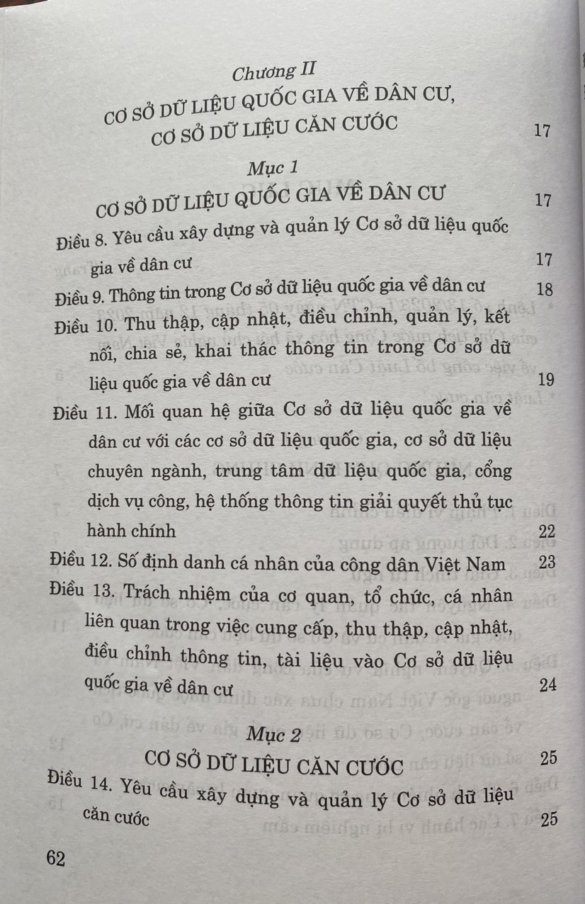 Mua tại TiktokLUẬT CĂN CƯỚC ( Theo Luật số 26/2023/QH15 áp dụng từ ngày 01-07-2024) Luật này quy định về Cơ sở dữ liệu quốc gia về dân cư, Cơ sở dữ liệu căn cước; thẻ căn cước, căn cước điện tử; giấy chứng nhận căn cước; quyền, nghĩa vụ, trách nhiệm của cơ quan, tổ chức, cá nhân có liên quan.