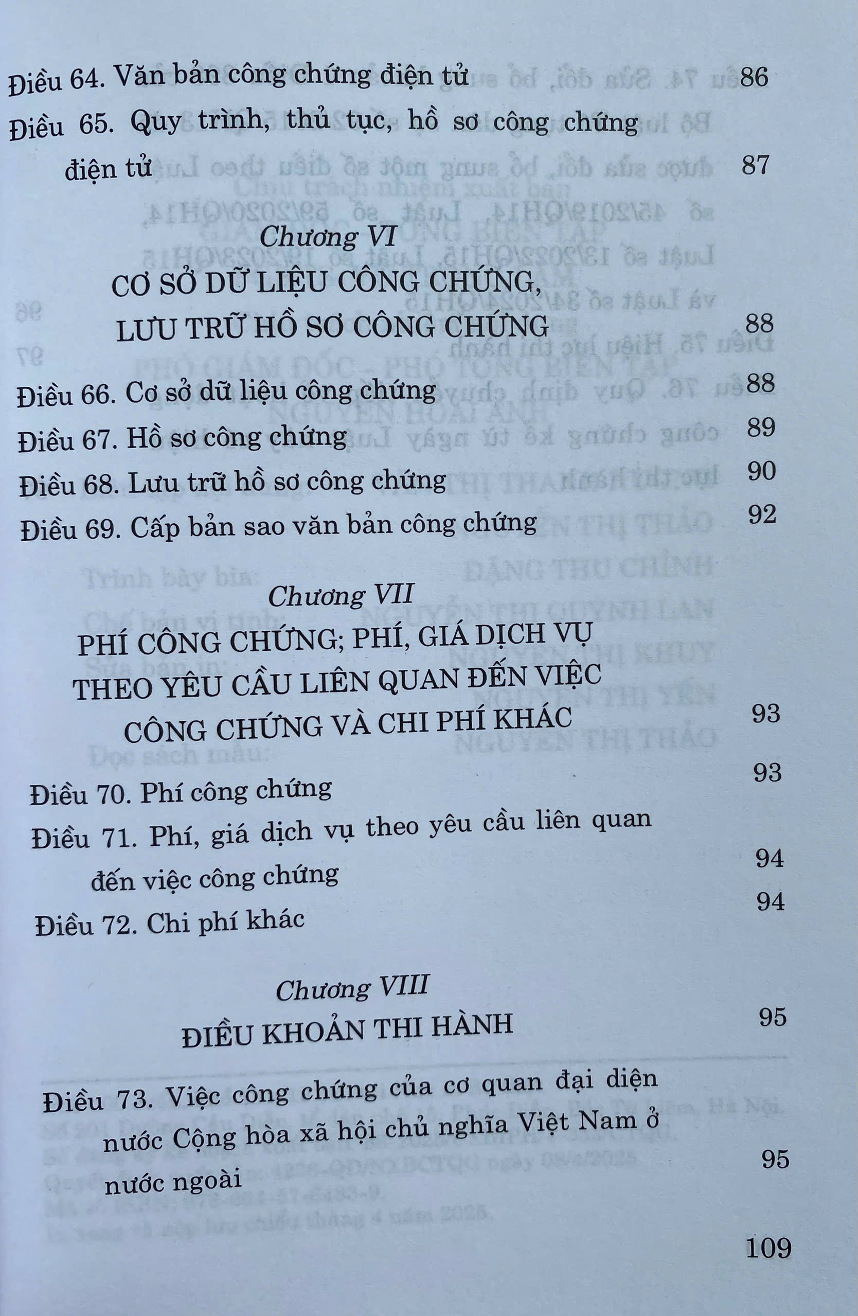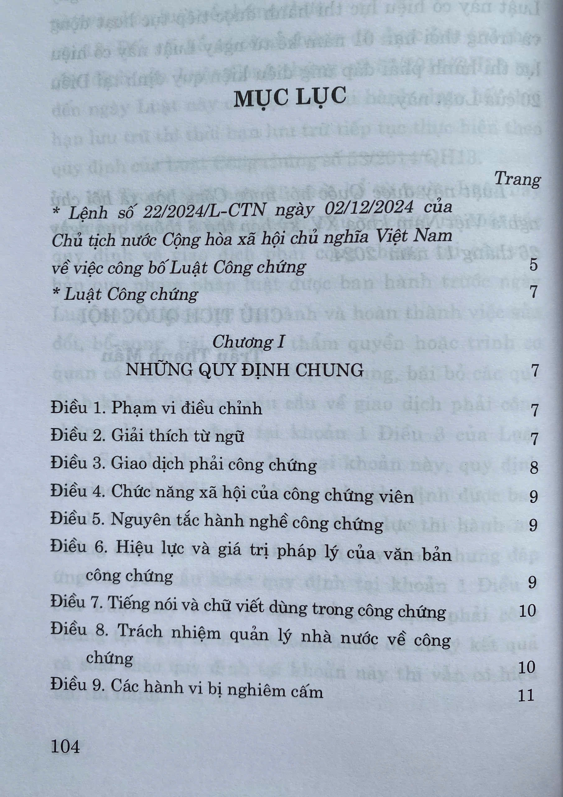 Luật Công Chứng số 46/2024/QH15 đã được Quốc Hội khoá XV thông qua tại kỳ họp thứ 8 ngày 26 tháng 11 năm 2024. Luật có hiệu lực áp dụng từ ngày 01 tháng 07 năm 2025. Luật gồm có 8 Chương, 76 điều.