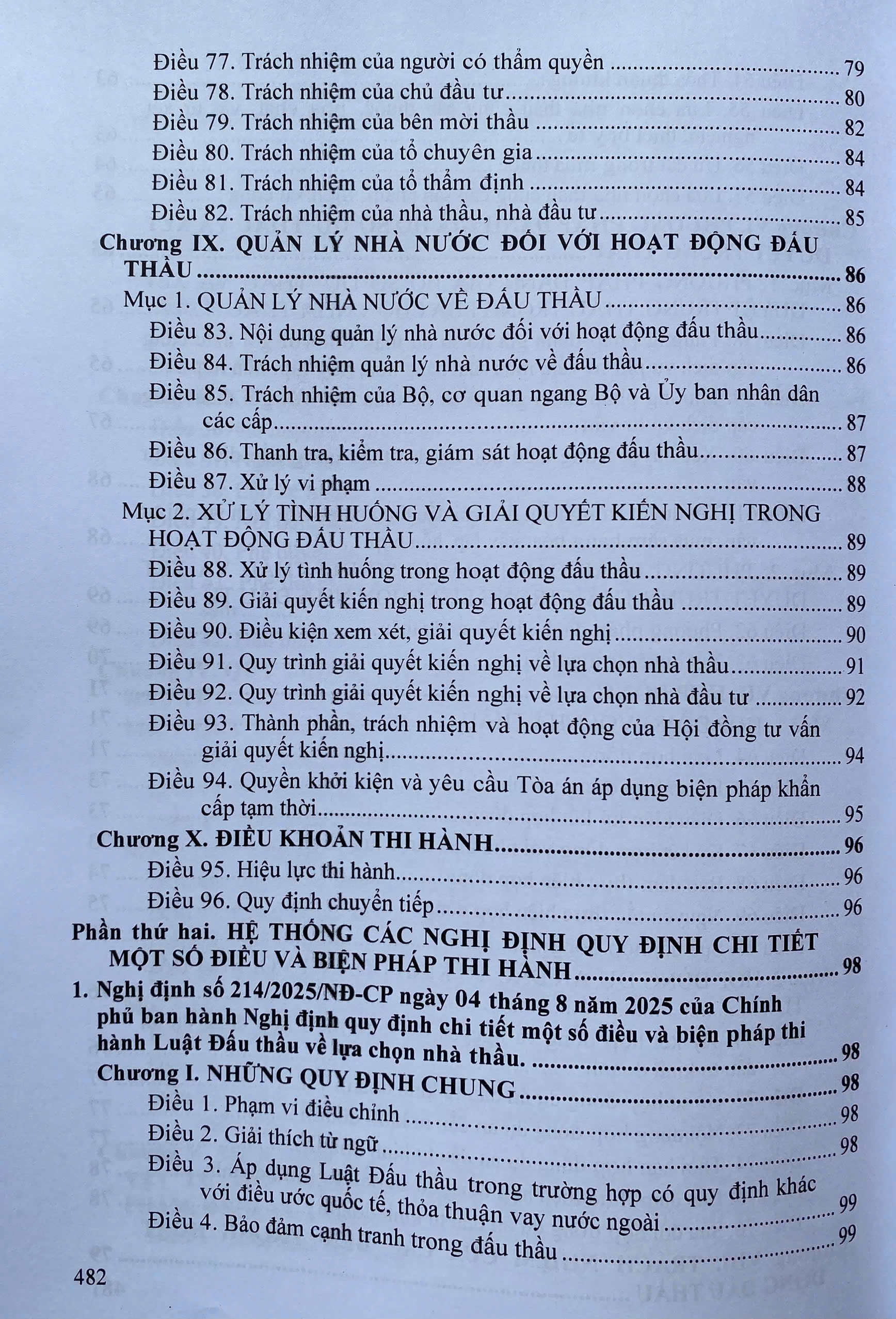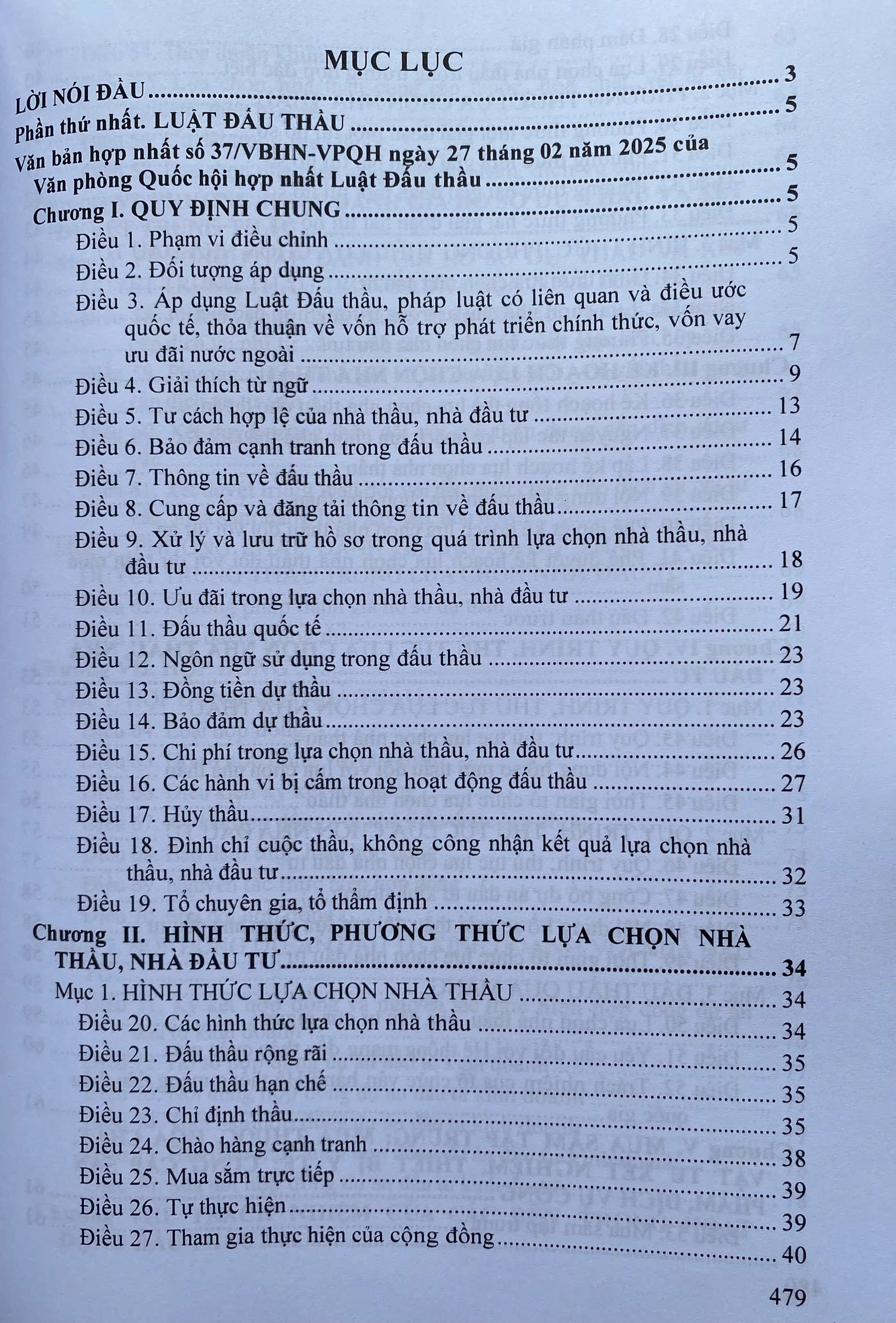 Luật sửa đổi, bổ sung một số điều của Luật Đấu thầu được Quốc hội Khóa XV thông qua tại Kỳ họp thứ 9 ngày 25 tháng 6 năm 2025, có hiệu lực thi hành từ ngày 01 tháng 7 năm 2025 (sau đây gọi là Luật). Để triển khai thi hành Luật kịp thời, toàn diện, thống nhất và hiệu quả, Thủ tướng Chính phủ ban hành Kế hoạch triển khai thi hành Luật sửa đổi, bổ sung một số điều của Luật Đấu thầu với các nội dung sau: Nghị định số 214/2025/NĐ-CP ngày 04 tháng 8 năm 2025 của Chính phủ ban hành Nghị định quy định chi tiết một số điều và biện pháp thi hành Luật Đấu thầu về lựa chọn nhà thầu; Nghị định số 225/2025/NĐ-CP ngày 15 tháng 8 năm 2025 của Chính phủ ban hành Nghị định sửa đổi, bổ sung một số điều của các Nghị định quy định chi tiết một số điều và biện pháp thi hành Luật Đấu thầu về lựa chọn nhà đầu tư; Thông tư số 79/2025/TT-BTC ngày 04 tháng 8 năm 2025 của Bộ Tài chính hướng dẫn việc cung cấp, đăng tải thông tin về đấu thầu và mẫu hồ sơ đấu thầu trên Hệ thống mạng đấu thầu quốc gia. Nhà xuất bản Hồng Đức xuất bản cuốn sách: LUẬT ĐẦU THẦU HỆ THỐNG CÁC NGHỊ ĐỊNH QUY ĐỊNH CHI TIẾT VÀ BIỆN PHÁP THI HÀNH Nội dung cuốn sách bao gồm những phần như sau: Phần thứ nhất: LUẬT ĐẦU THẦU Phần thứ hai: HỆ THỐG CÁC NGHỊ ĐỊNH QUY ĐỊNH CHI TIẾT MỘT SỐ ĐIỀU VÀ BIỆN PHÁP THI HÀNH