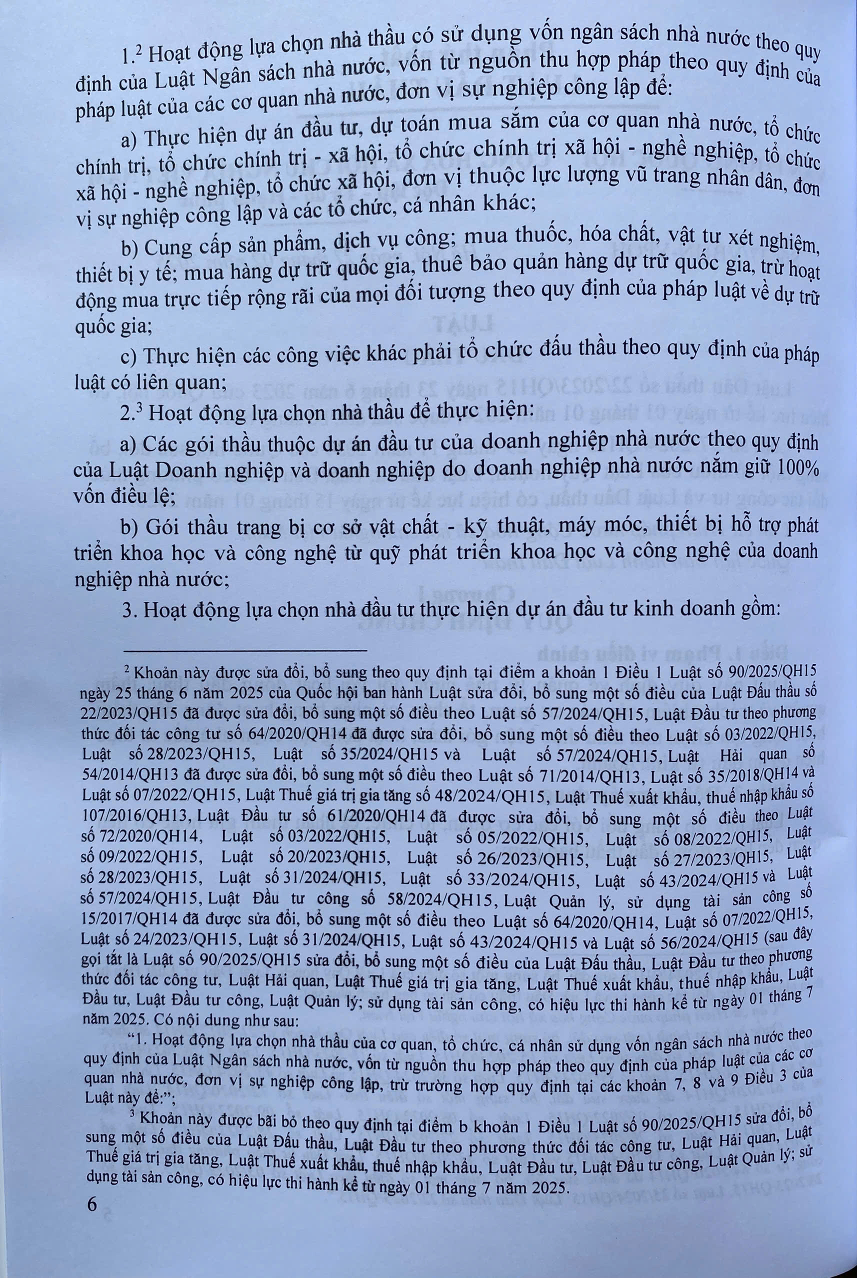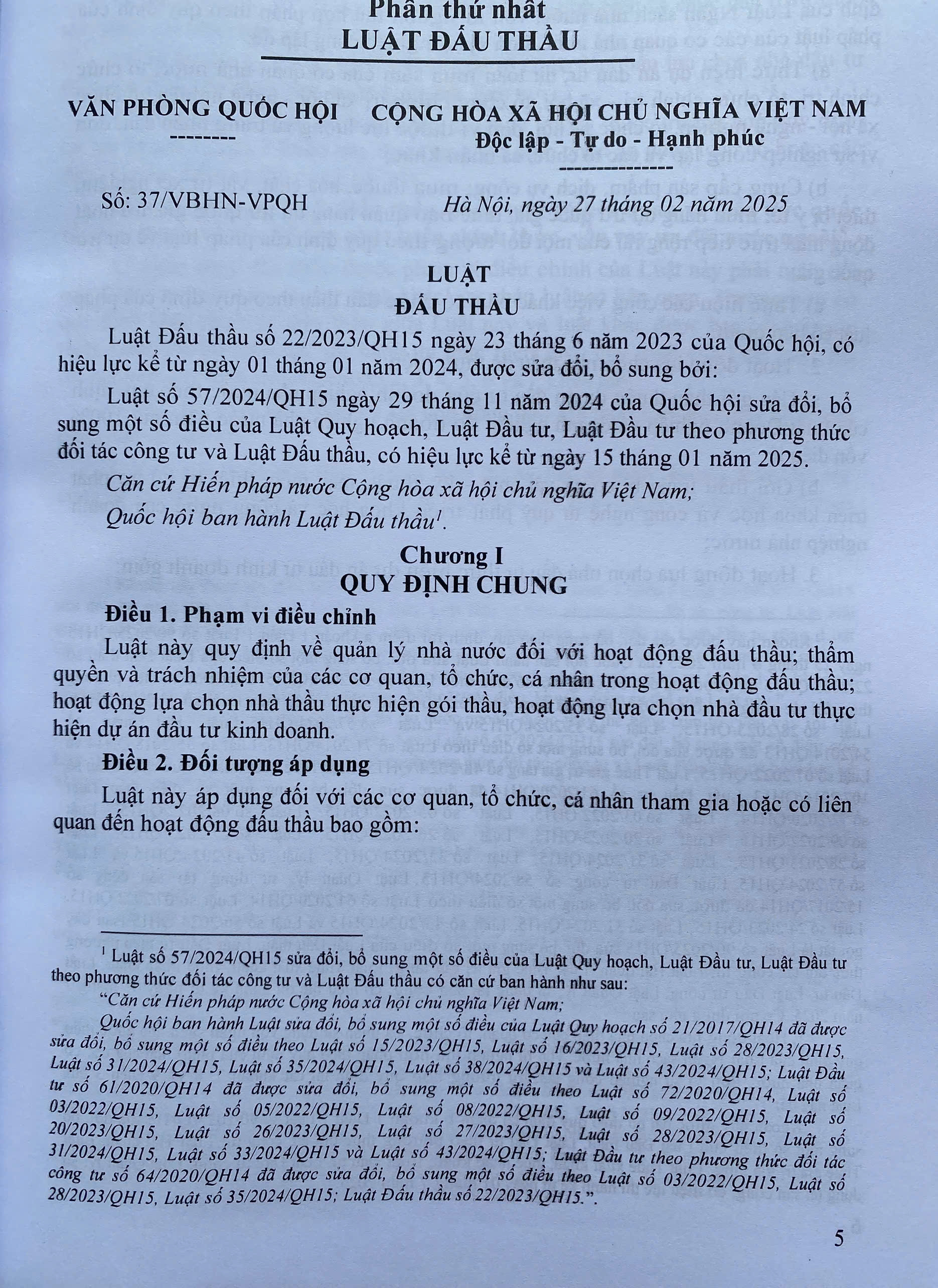 Luật sửa đổi, bổ sung một số điều của Luật Đấu thầu được Quốc hội Khóa XV thông qua tại Kỳ họp thứ 9 ngày 25 tháng 6 năm 2025, có hiệu lực thi hành từ ngày 01 tháng 7 năm 2025 (sau đây gọi là Luật). Đ...