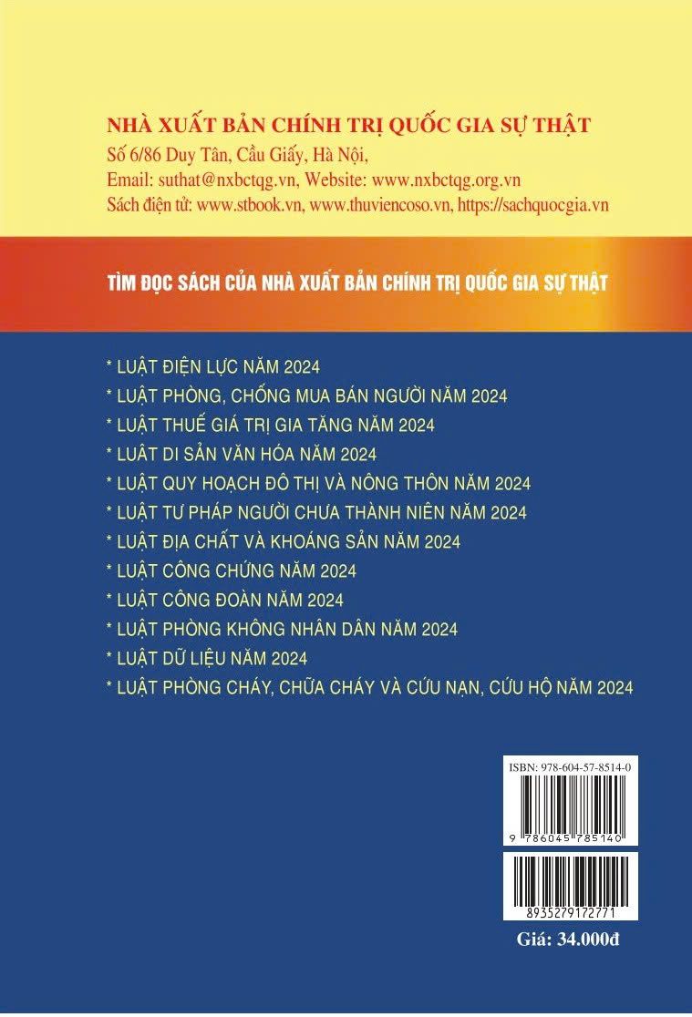 Nhằm đáp ứng nhu cầu của bạn đọc trong việc nghiên cứu, tìm hiểu, áp dụng pháp luật một cách thuận tiện, đầy đủ và thống nhất, Nhà xuất bản Chính trị quốc gia Sự