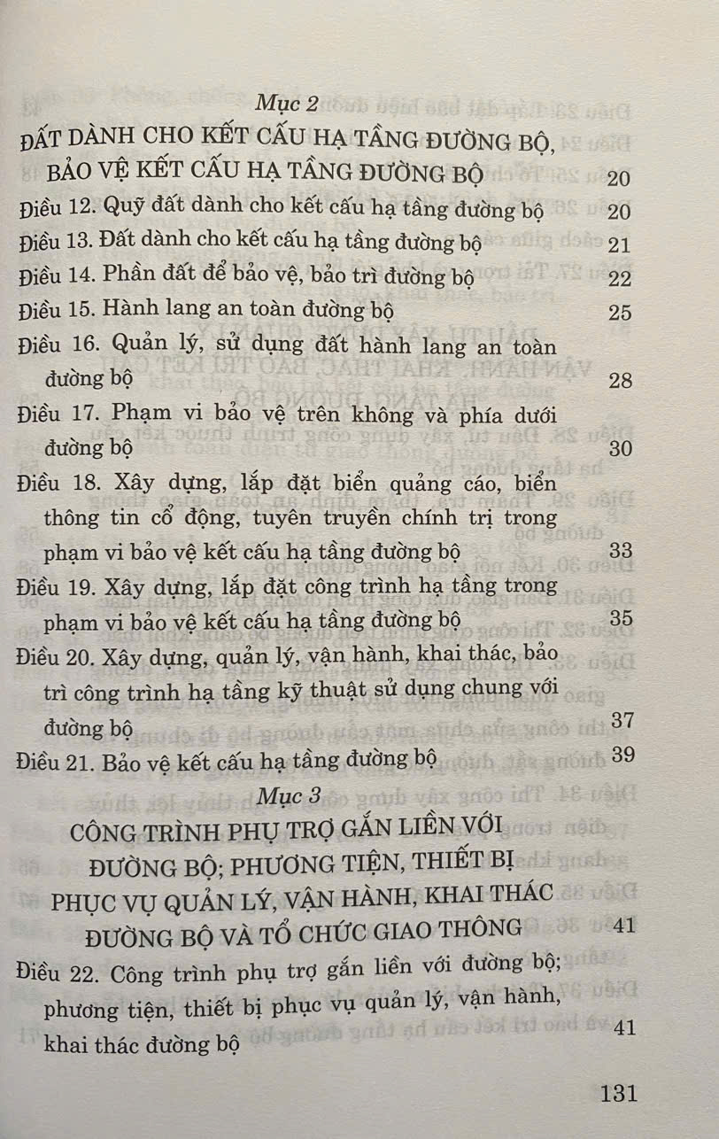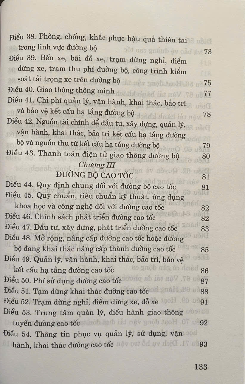 Mua tại TiktokLuật Đường Bộ số 35/2024/QH15 được Quốc hội nước Cộng hòa xã hội chủ nghĩa Việt Nam khóa XV, kỳ họp thứ 7 thông qua ngày 27 tháng 6 năm 2024 . Luật Đường bộ năm 2024 gồm 6 chương và 86 điều quy định về quy hoạch, đầu tư, xây dựng, quản lý, vận hành, khai thác, bảo trì, bảo vệ kết cấu hạ tầng đường bộ; tổ chức vận tải đường bộ và quản lý nhà nước về hoạt động đường bộ. Luật có hiệu lực áp dụng từ ngày 01 -01-2025.