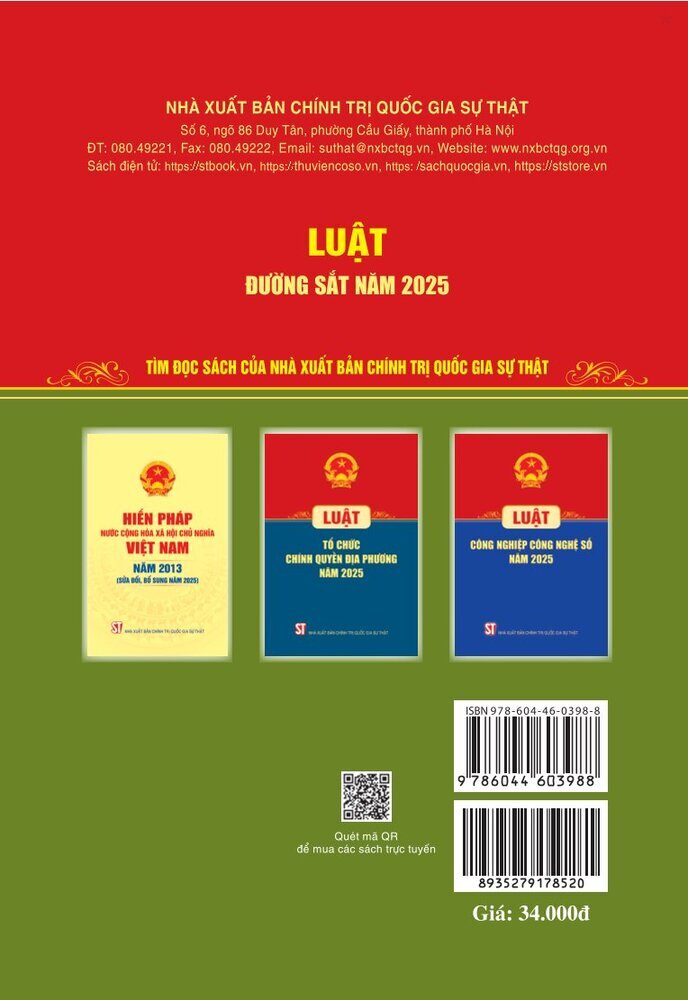 Luật Đường sắt năm 2025 Khổ 13x19 Năm XB: 2025