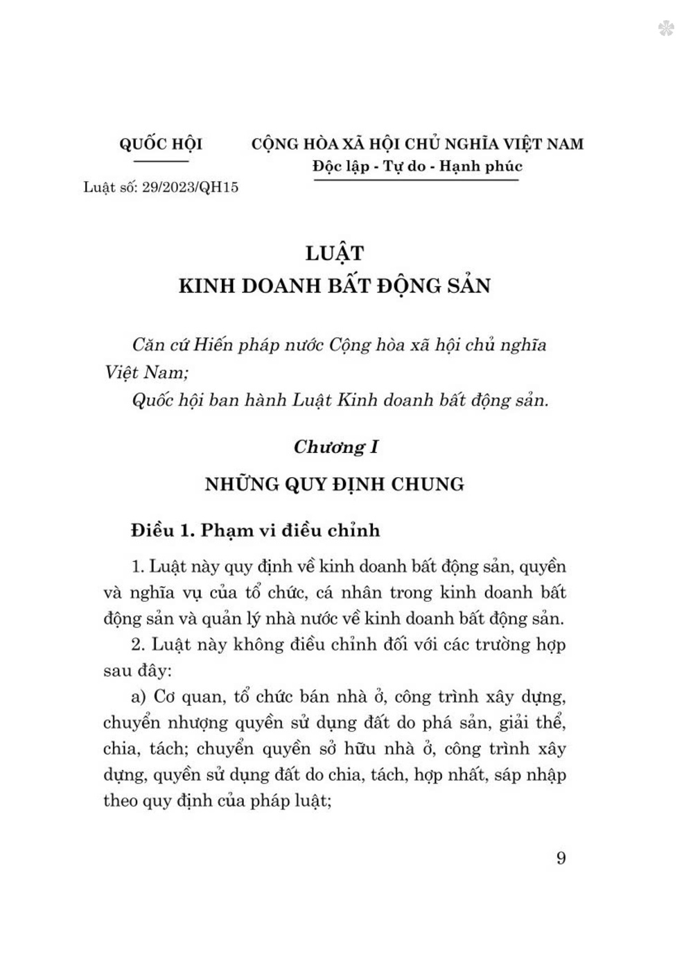 Luật kinh doanh BĐS 2023 áp dụng từ ngày 01 tháng 08 năm 2024 - Phần 1