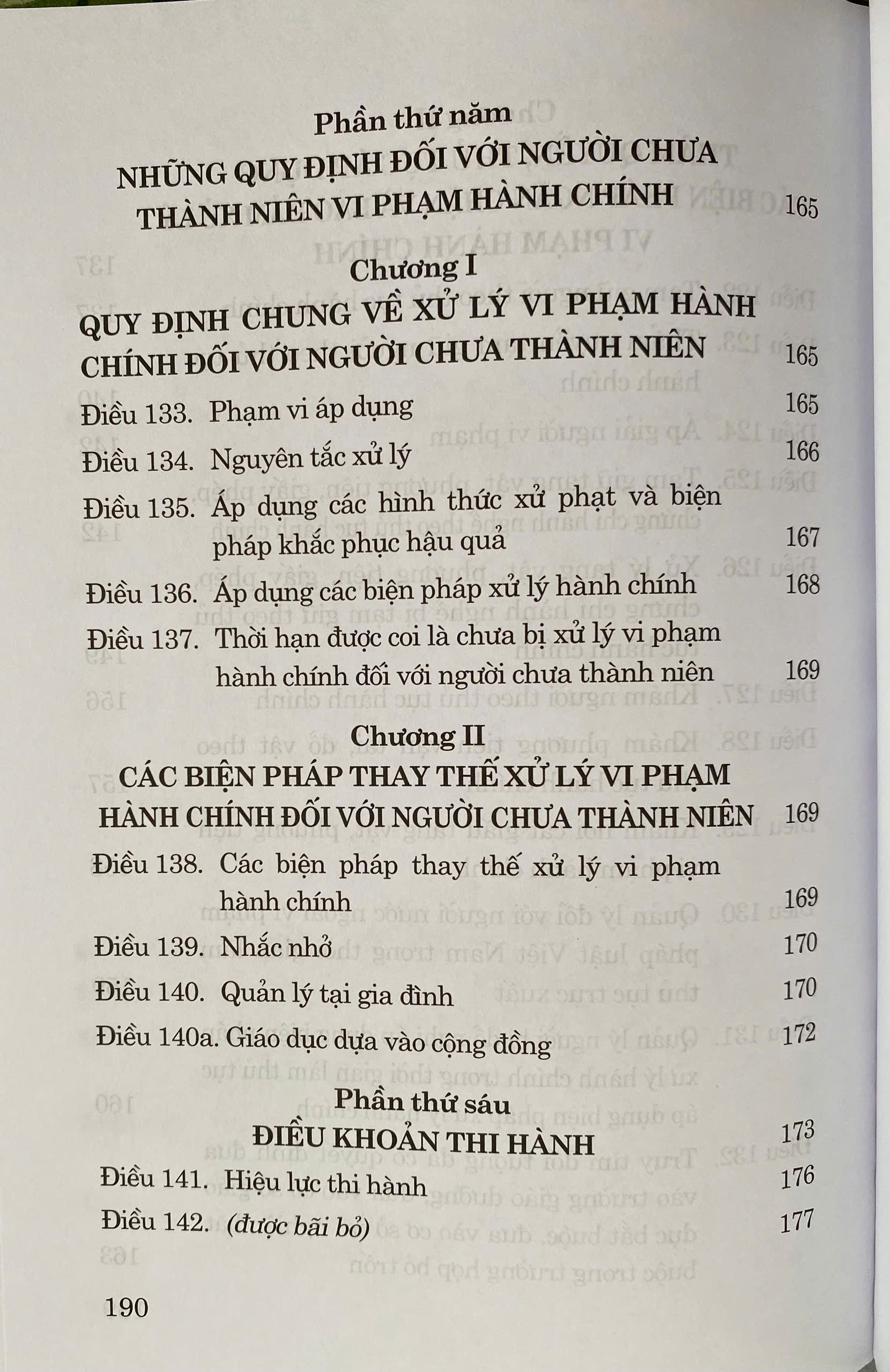 Luật gồm: – Những quy định chung – Xử phạt vi phạm hành chính – Áp dụng các biện pháp xử lý hành chính – Các biện pháp ngăn chặn và bảo đảm xử lý