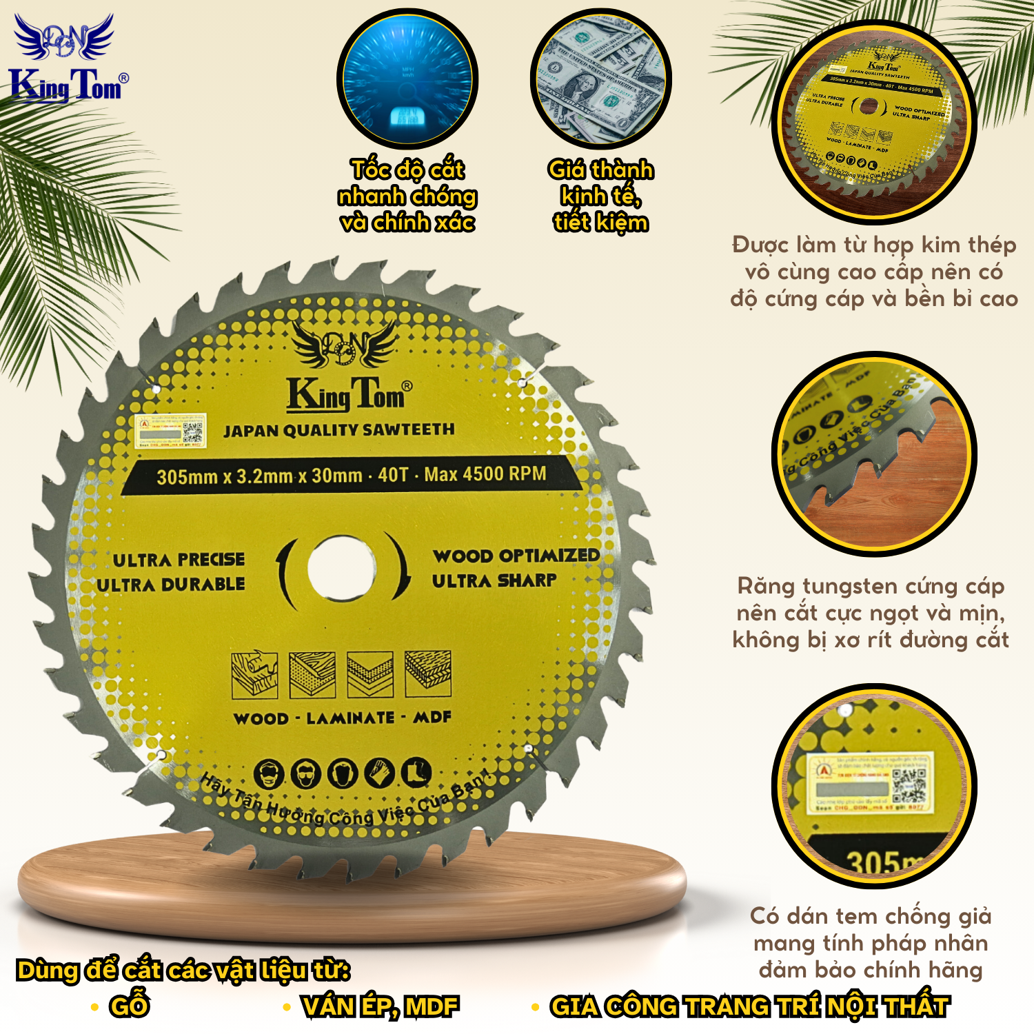 LƯỠI CƯA - LƯỠI CẮT GỖ 305-40 RĂNG KINGTOM VÀNG – CHẤT LƯỢNG VÔ ĐỊCH PHÂN KHÚC GIÁ RẺ!