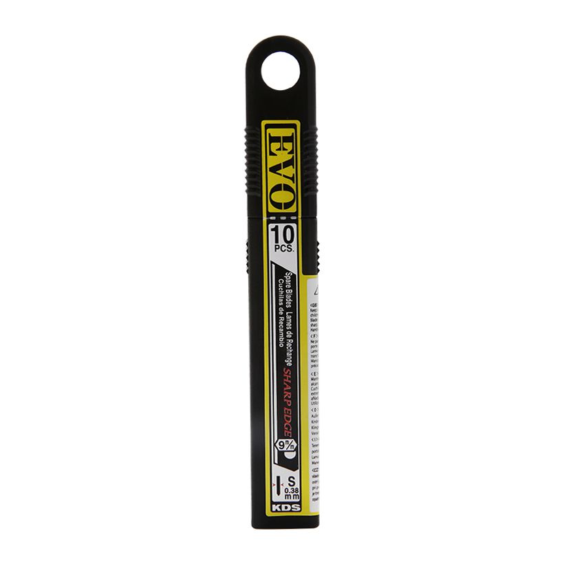 - Lưỡi dao không đốt 9mm KDS SB-10BNL là loại lưỡi dao thẳng, màu đen, không có đốt, phù hợp cho loại dao S-18 của thương hiệu KDS. Lưỡi dao mỏng, nhẹ, chuyên dùng để cắt giấy.
