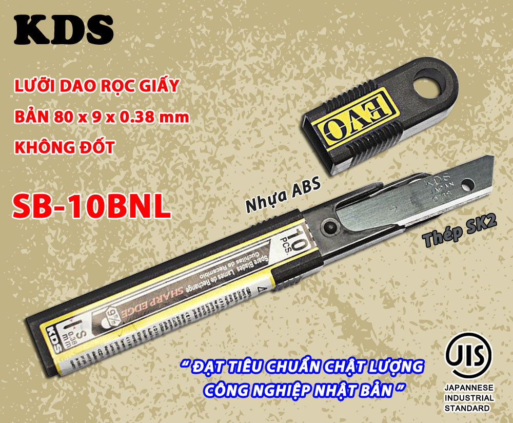 - Lưỡi dao không đốt 9mm KDS SB-10BNL là dụng cụ hữu ích cho nhiều ngành nghề và đối tượng, từ học sinh, sinh viên, nhân viên công sở đến thợ chế tác thủ công, thợ điện, ngành đóng gói… Một lưỡi dao sắc bén, tiện dụng sẽ giúp bạn hoàn thành công việc nhanh hơn, tiết kiệm thời gian. ƯU ĐIỂM NỔI BẬT CỦA LƯỠI DAO KHÔNG ĐỐT: