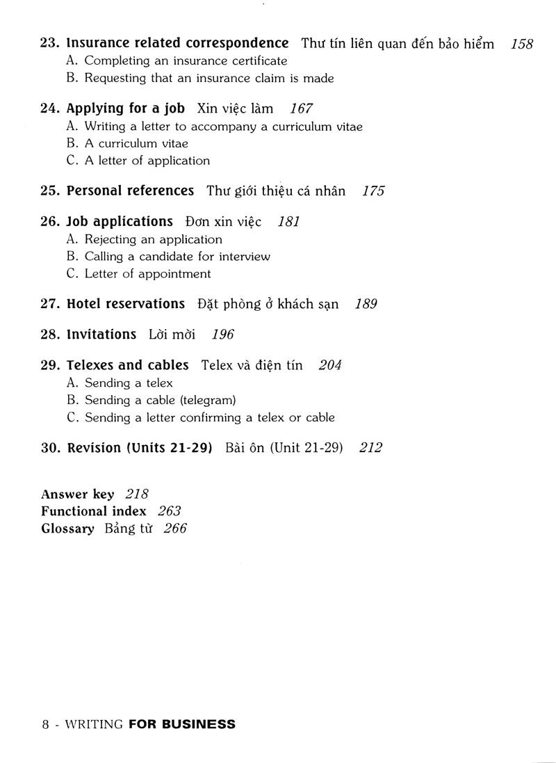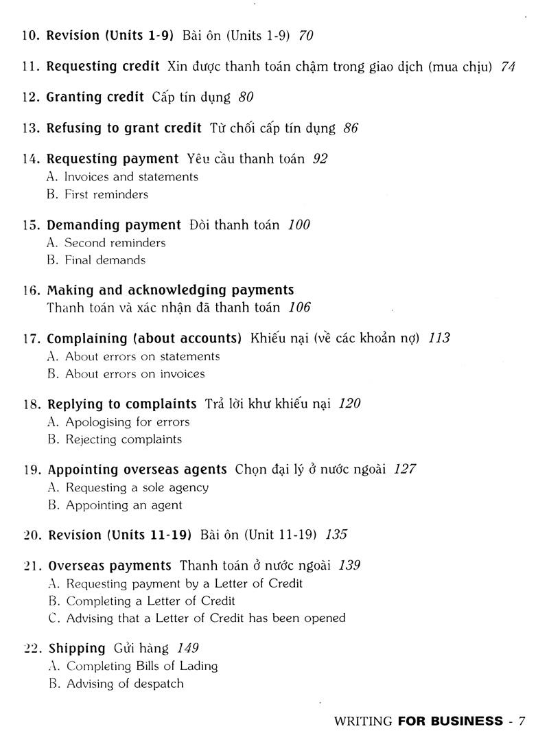 Mua tại Tiktokbook has been very carefully organised to give systematic presenttion and practice of the main functional patterns used in writing the most common forms of business letters. Each unit is task based and deals with a small number os functions. Students are given extensive graded praded practive in writing full letters. An answer key is provided for many of the exercises so that the material is suitable for use either by a teacher with a class or by students studying on their