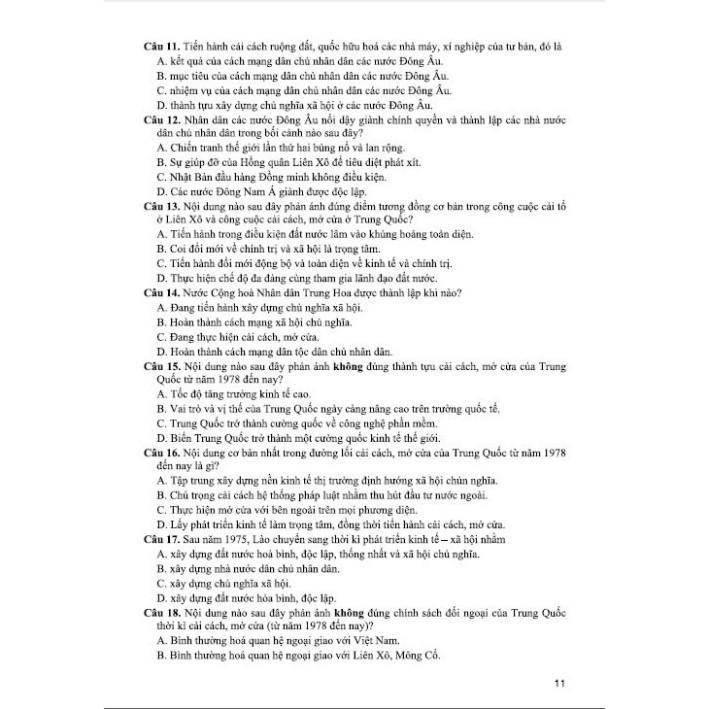 tVề tỉ lệ câu hỏi theo chương trình và nội dung kiến thức cần ôn luyện, học sinh cần tập trung nhiều hơn vào những chủ đề ở lớp 12 (chiếm khoảng 85%) và một phần của lớp 11 (chiếm khoảng 15%). Nhằm giúp các em học sinh ôn luyện thi Tốt nghiệp THPT theo hướng đánh giá năng lực môn Lịch sử đạt kết quả cao nhất, tác giả biên soạn sách