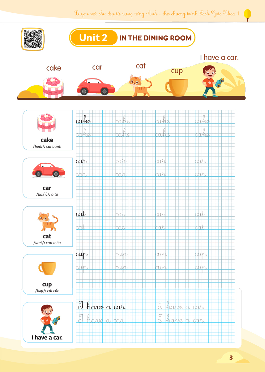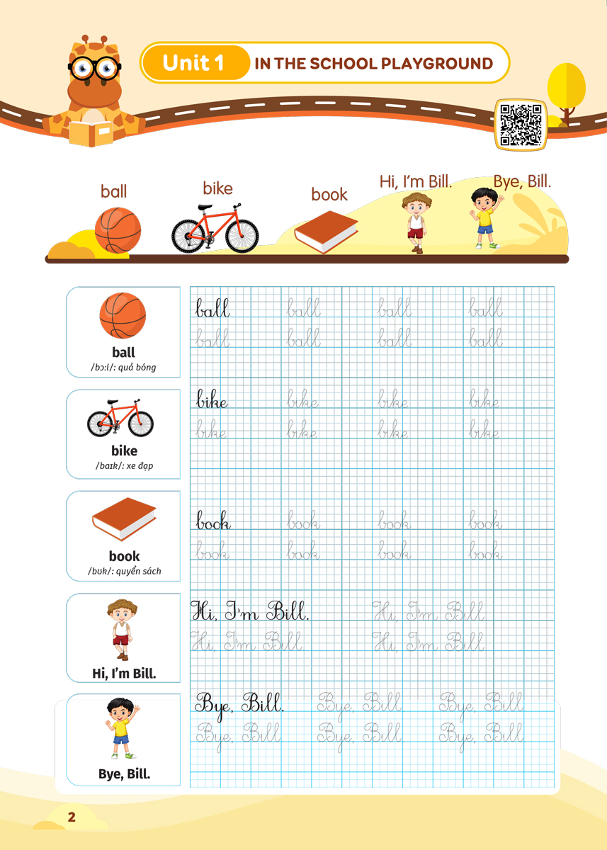 Luyện viết chữ đẹp từ vựng tiếng Anh - theo chương trình Sách giáo khoa 1- là bộ tập viết được biên soạn cho các bé học sinh từ lớp 1, hỗ trợ các bé học hiệu quả, ghi nhớ nhanh từ vựng theo chương trình học trên lớp.