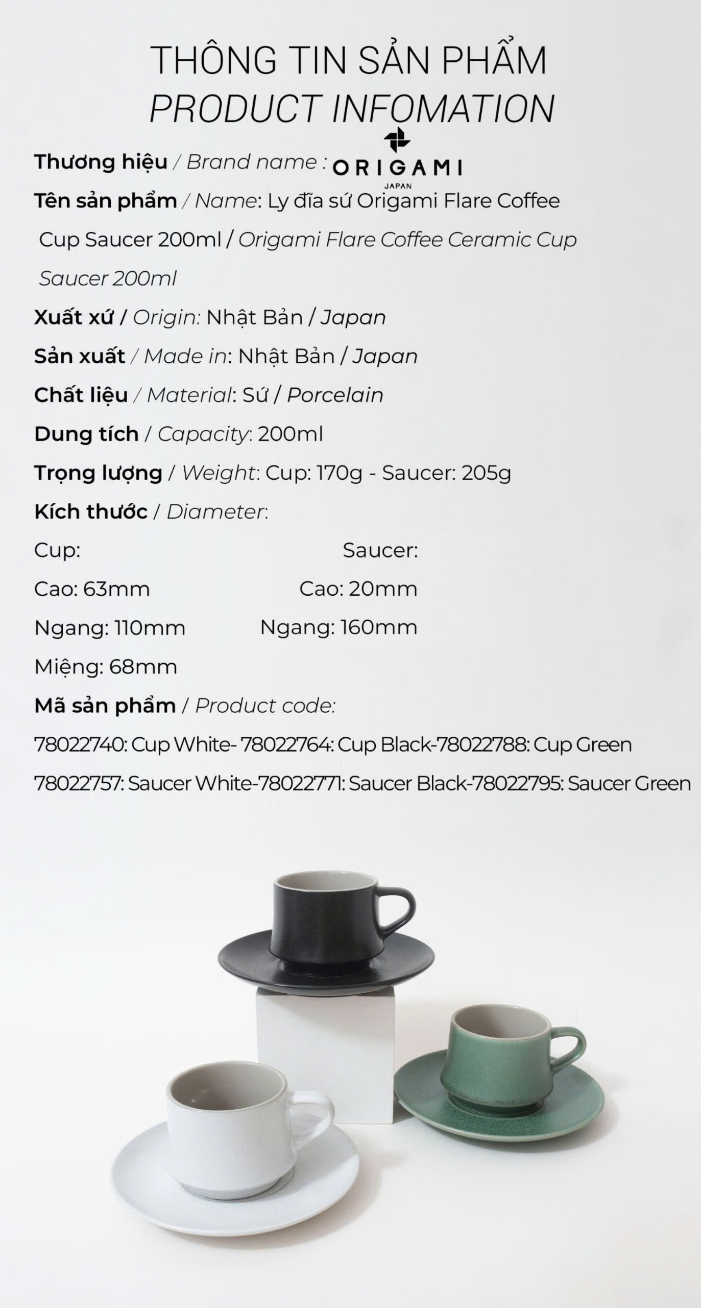 Ly sứ Origami Cappuccino Latte Bowl 170ml uống trà cà phê Ly sứ có độ dày cao, nặng tay giúp giữ nhiệt tốt. Vành miệng ly vát mỏng tạo cảm giác uống tốt hơn. Tay