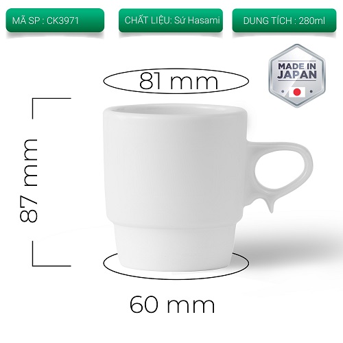 Miệng tách được thiết kế bo tròn . Thành tách dày giúp giữ nhiệt tốt hơn . Quai cầm chắc . Bề mặt tách được trán men bóng.