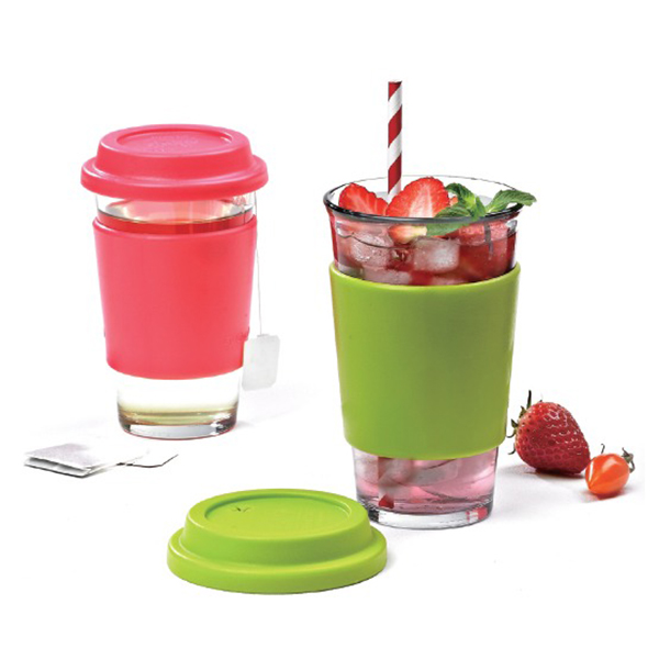 Nắp và quai cầm làm từ nhựa PP chống trơn trượt, có thêm một vòng quanh thân ly chống nóng khi cầm nóng. Nắp có thể dùng làm lót ly và các bộ phận này có thể tách riêng ra khi cần thiết.