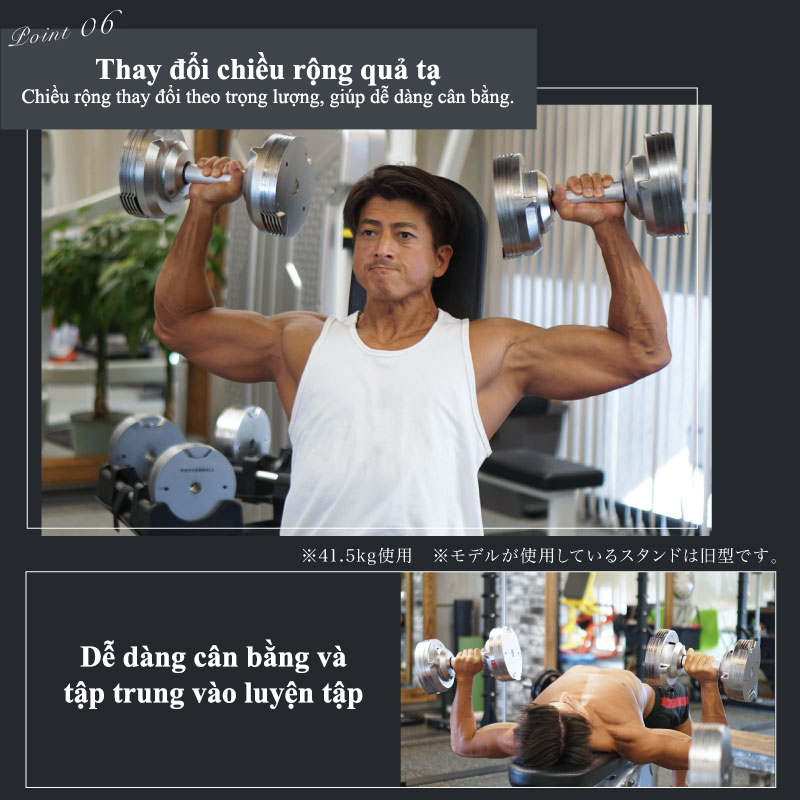 Thông tin tạ tay điều chỉnh 20 Kg - Tạ tay điều chình 20 Kg được thiết kế chắc chắn, với tính thẩm mỹ cao. Có kèm đế đỡ tiện lợi, tránh gây trầy xước cho tạ.