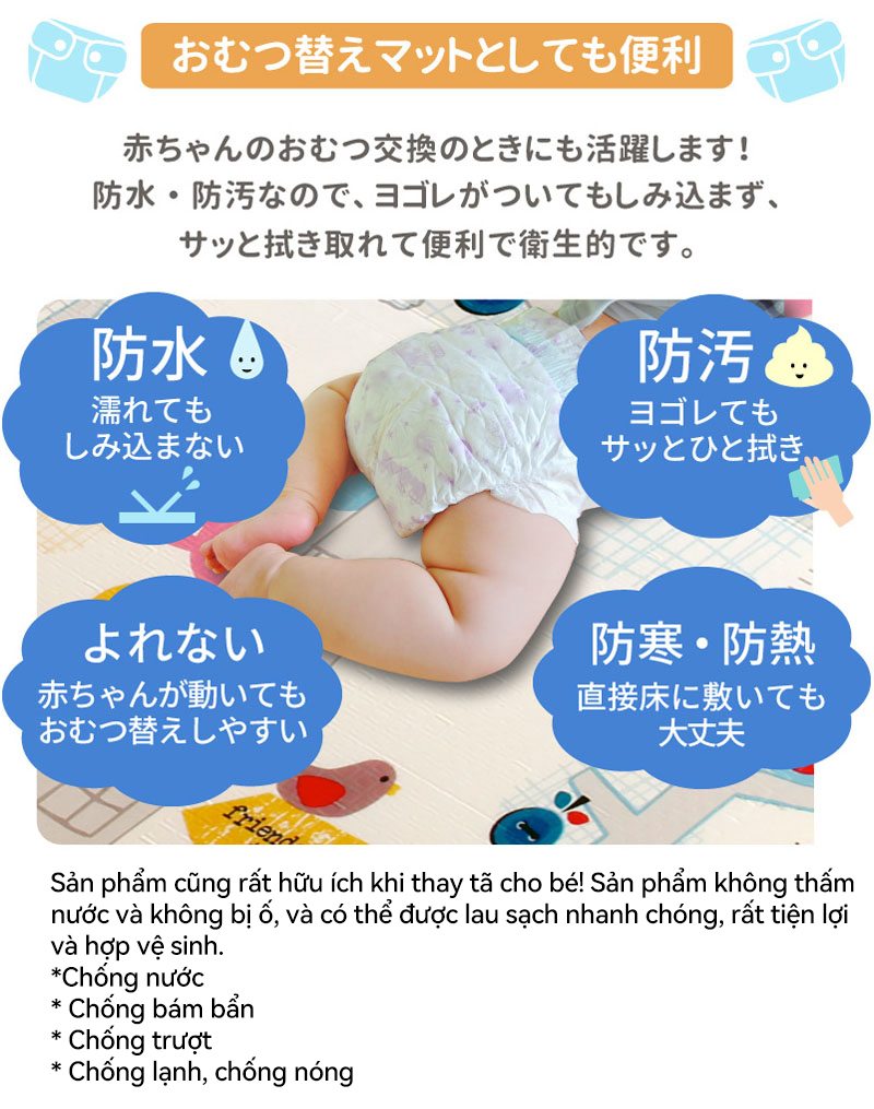 Thảm xốp cho bé Umoo Gấp gọn, thảm lót cho bé chơi Tính năng vượt trội của thảm gấp 2 mặt cao cấp + Chất liệu xốp XPE, 2 mặt silicon không mùi. An toàn