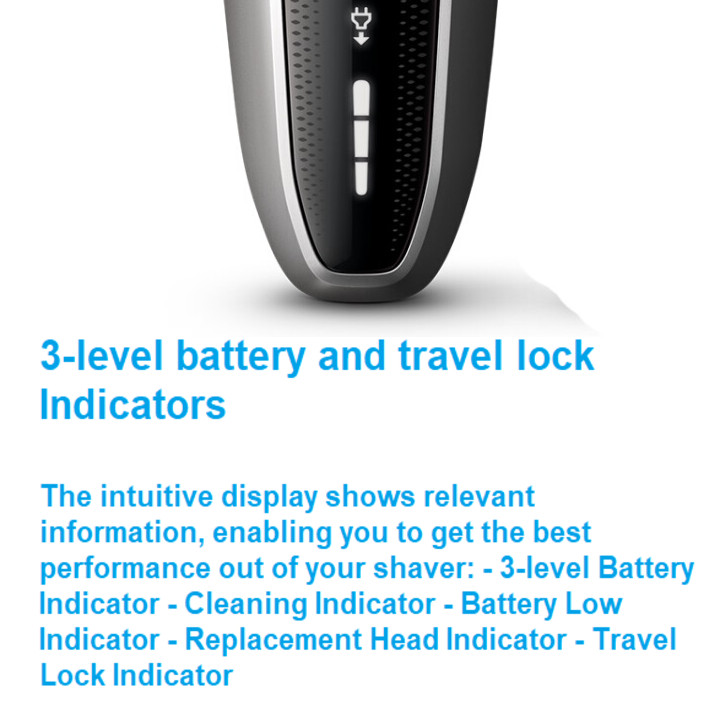 TÍNH NĂNG NỔI BẬT: Lưỡi cạo SteelPrecision Đầu cạo linh hoạt 360 độ Cảm biến bộ điều hợp nguồn Đầu tỉa tóc mai và ria mép tích hợp THÔNG TIN CHI TIẾT: Máy cạo râu