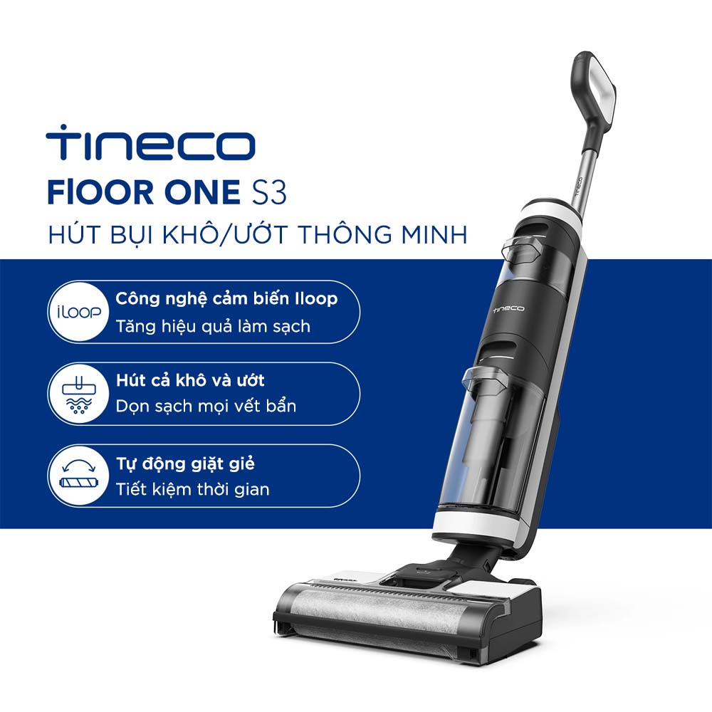 Máy hút bụi lau sàn khô ướt tự giặt giẻ Tineco Floor One S3 là dòng máy hút bụi kết hợp lau sàn thông minh, sở hữu thiết kế đẹp mắt và hàng loạt công nghệ thông minh tiên tiến sẽ giúp bạn dọn sạch mọi vết bẩn, bụi bẩn có trên sàn nhà.