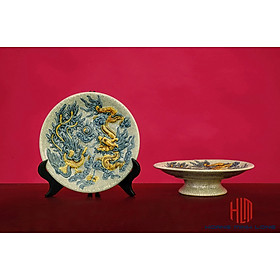 Mâm bồng rồng men rạn đắp nổi dát vàng 24k cao cấp