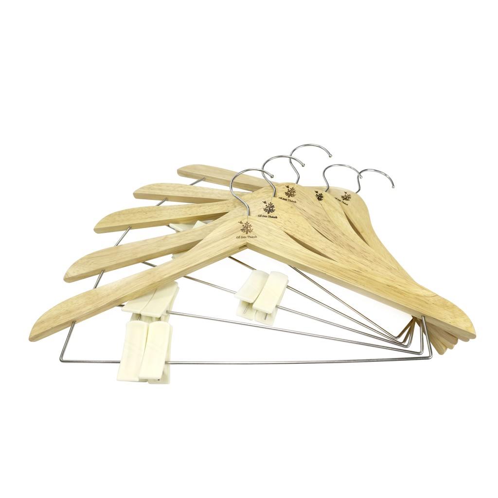 ✨Máng áo có thanh Inox, 2 kẹp nhựa (bộ 5 cái) | Gỗ Đức Thành - 08331