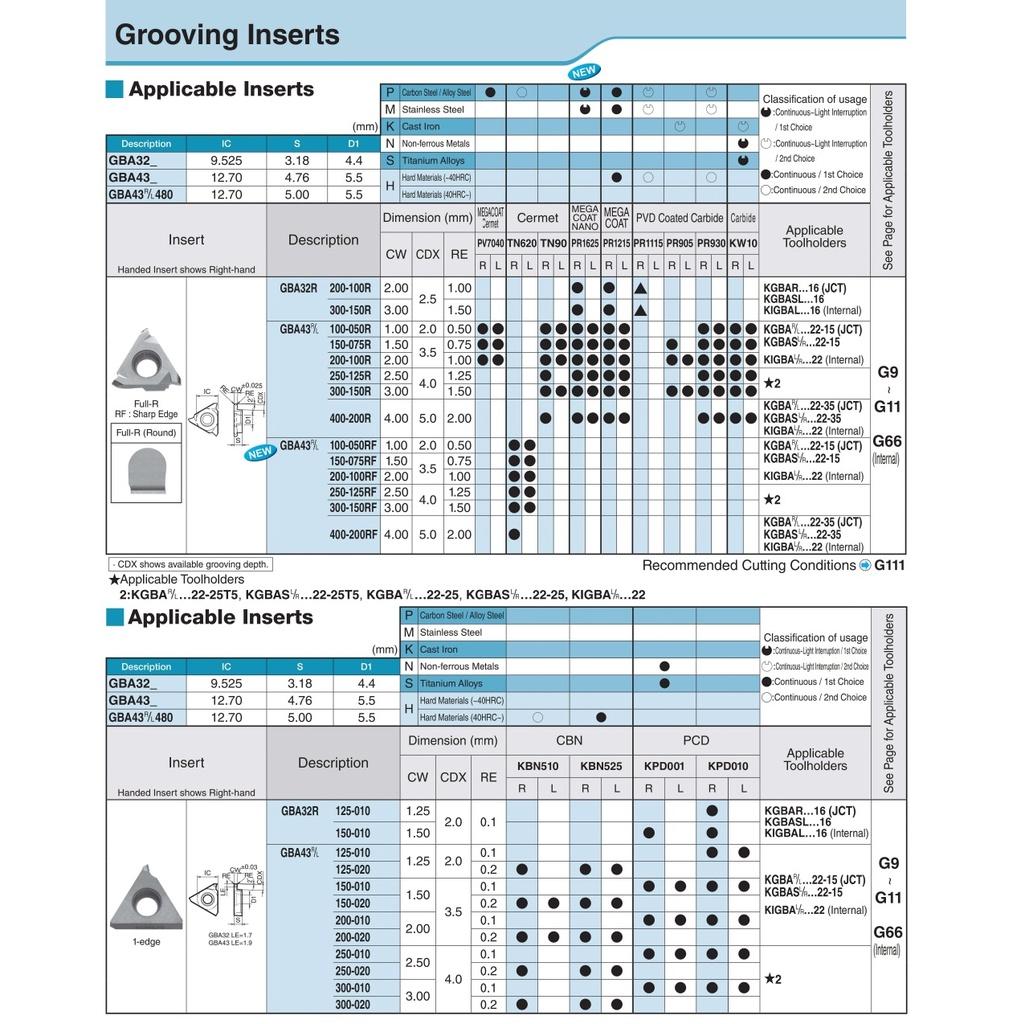 Mảnh dao tiện rãnh phủ PVD Kyocera Model GBA43L250-125R PR930 Hàng Chính Hãng Chất Lượng Uy Tín