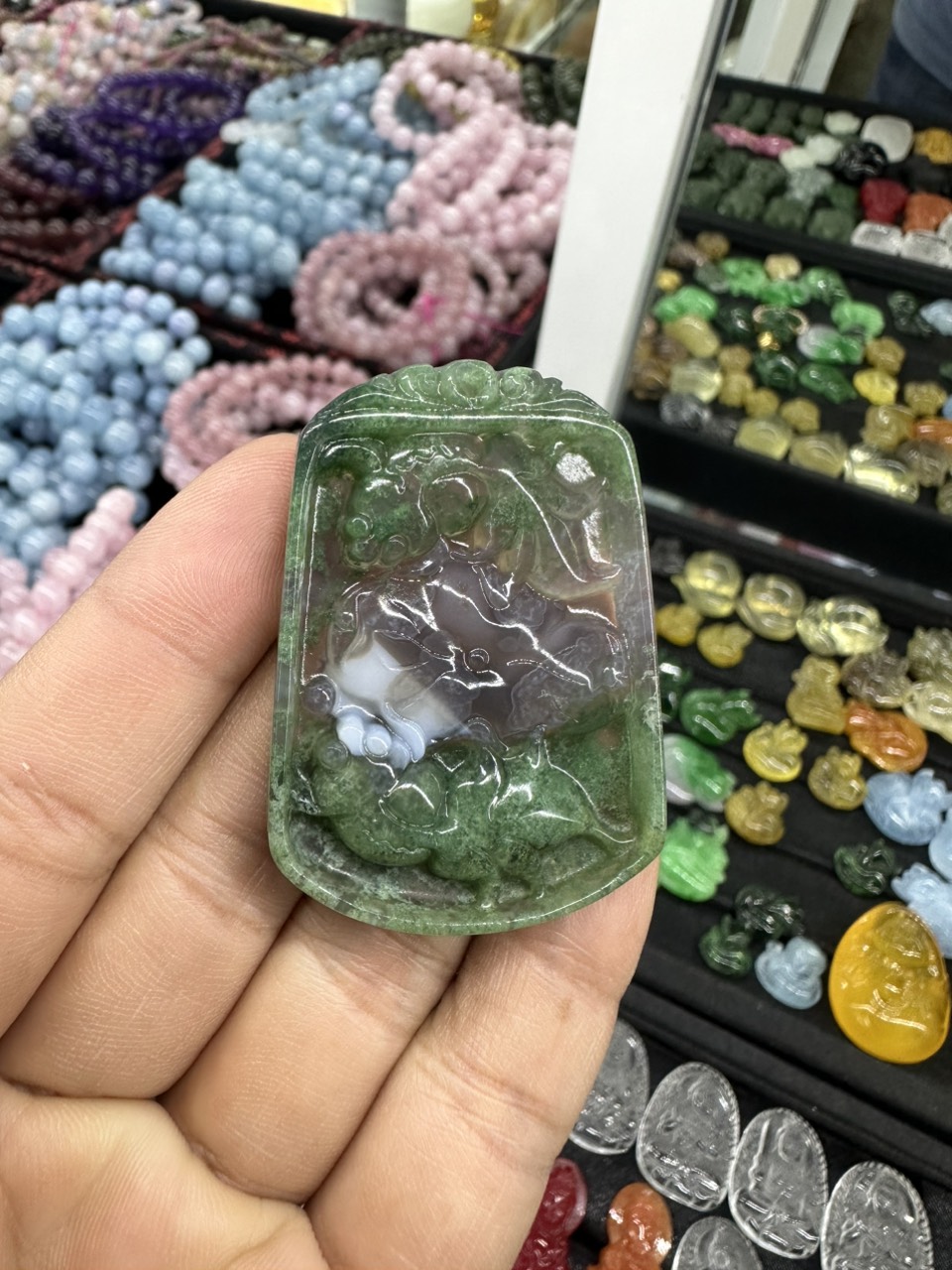 Mua tại TiktokHợp tất cả các mệnh Chất liệu: Đá ngọc băng tảo Kích thước: Cao 4,8 cm x Dài 3,3 cm Tặng kèm dây đeo
