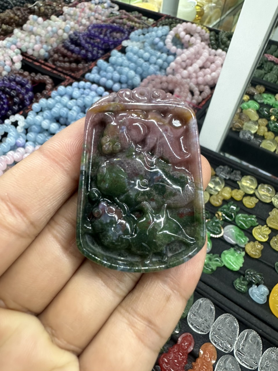 Chất liệu: Đá ngọc băng tảo Kích thước: Dài 5,2cm x Rộng 3,4cm Tặng kèm dây đeo vải rút Ý nghĩa: - Chiêu tài, phát lộc, bỗ trợ mạnh công danh sự nghiệ Đại diện