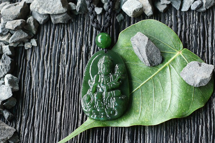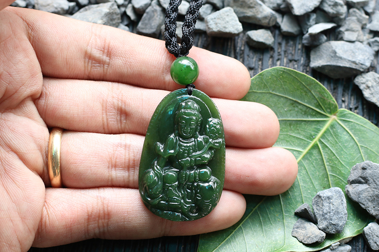 Mặt Dây Chuyển Phổ Hiền Bồ Tát Ngọc Bích Ngọc Quý Gemstones GA105 - Theo phong thủy, người ta cho rằng đeo đồ trang sức bằng đá ngọc bích có tác dụng giúp làm cho mối quan hệ trong công việc trở nên suôn sẻ.
