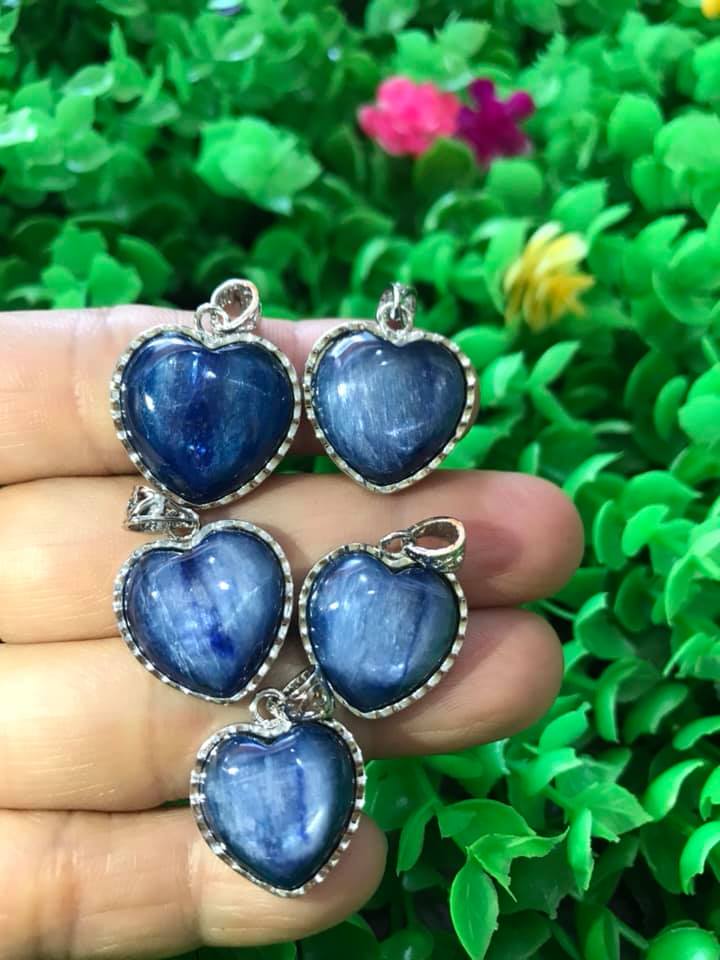 ✨MẶT DÂY CHUYỀN TRÁI TIM ĐÁ KYANITE HAY GỌI LÀ ĐÁ SAPPHIRE NƯỚC TỰ NHIÊN MÀU XANH DƯƠNG ĐẬM RẤT RẤT ĐẸP LẮM LẮM Ạ SIZE CAO 18MM X NGANG 19MM NỮ MỆNH THỦY MỆNH MỘC ĐEO Ạ