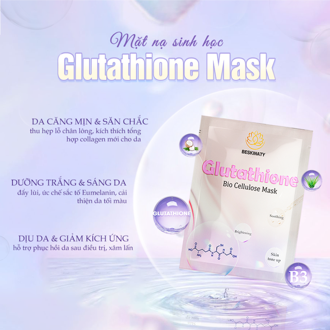 Mặt Nạ Sinh Học Dưỡng Sáng Da Glutathione BESKINATY Hàn Quốc Ứng dụng công nghệ sinh học tiên tiến hiện nay, mặt nạ sinh học cấp ẩm chuyên sâu Glutathione BESKINATY được chiết xuất từ