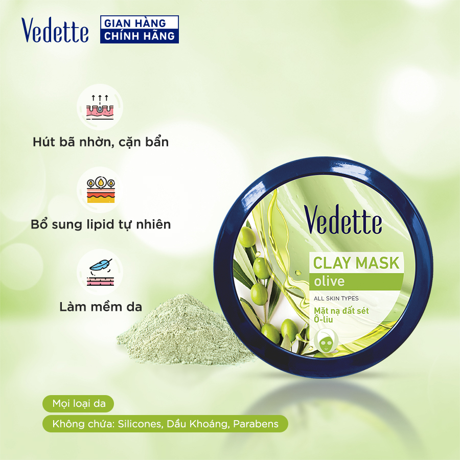- Mặt nạ đất sét Vedette làm sạch da khỏi lượng dầu thừa và bụi bẩn
