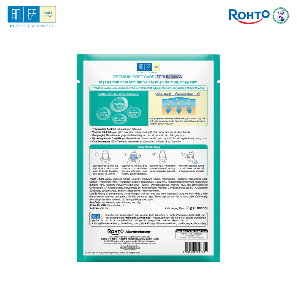 ✨Mặt nạ tinh chất làm dịu và cải thiện da mụn, nhạy cảm cao cấp Hada Labo Premium Pore Care Serum Mask (23g/miếng)