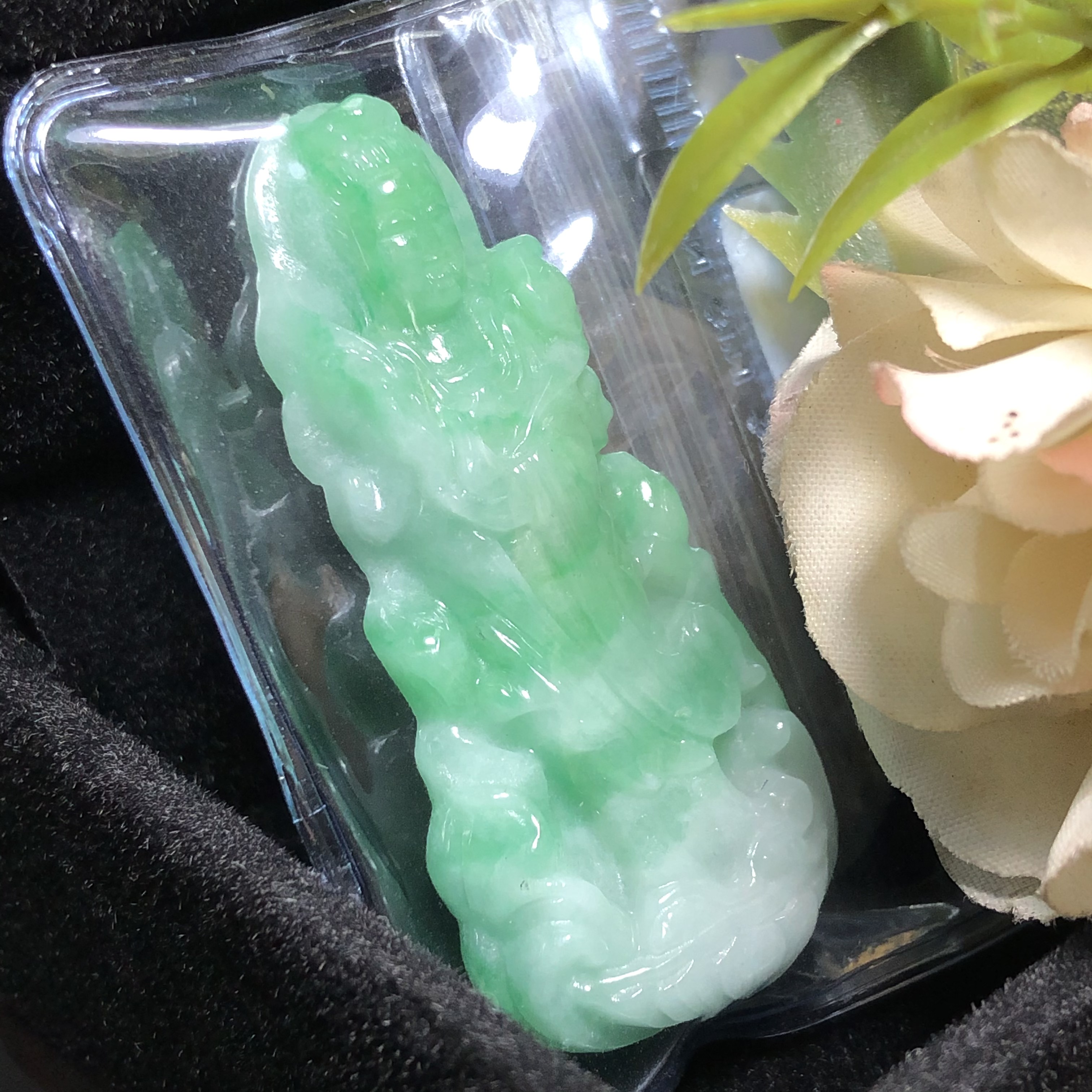 Mặt Phật Bà đứng Cẩm Thạch xanh trắng lí - Chất liệu: Ngọc Cẩm Thạch tự nhiên. - Màu sắc: Xanh lí phớt trắng - Kích thước: ngang 49mm, cao 23mm, dày 4mmx8mm - Mã kiểm định: 86691 - Tiêu chuẩn