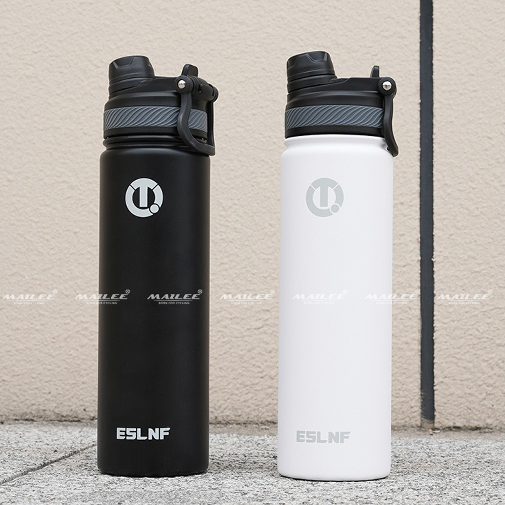 Bình Nước Xe Đạp Inox 304 Giữ Nhiệt ESL-053 dung tích 650ml màu Trắng/Đen giữ nhiệt