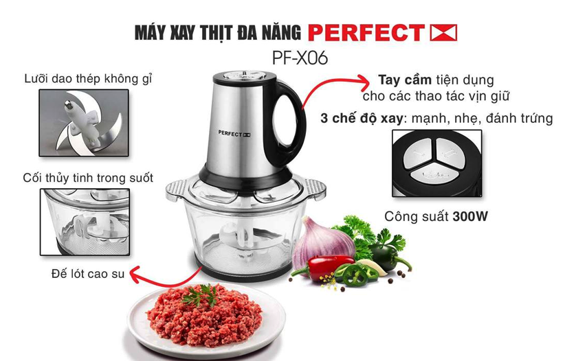 ✨(Mẫu mới) Máy xay thực phẩm đa năng Perfect PF-X06 xay thịt, rau củ quả, hành tỏi, ớt, gia vị - Hàng chính hãng