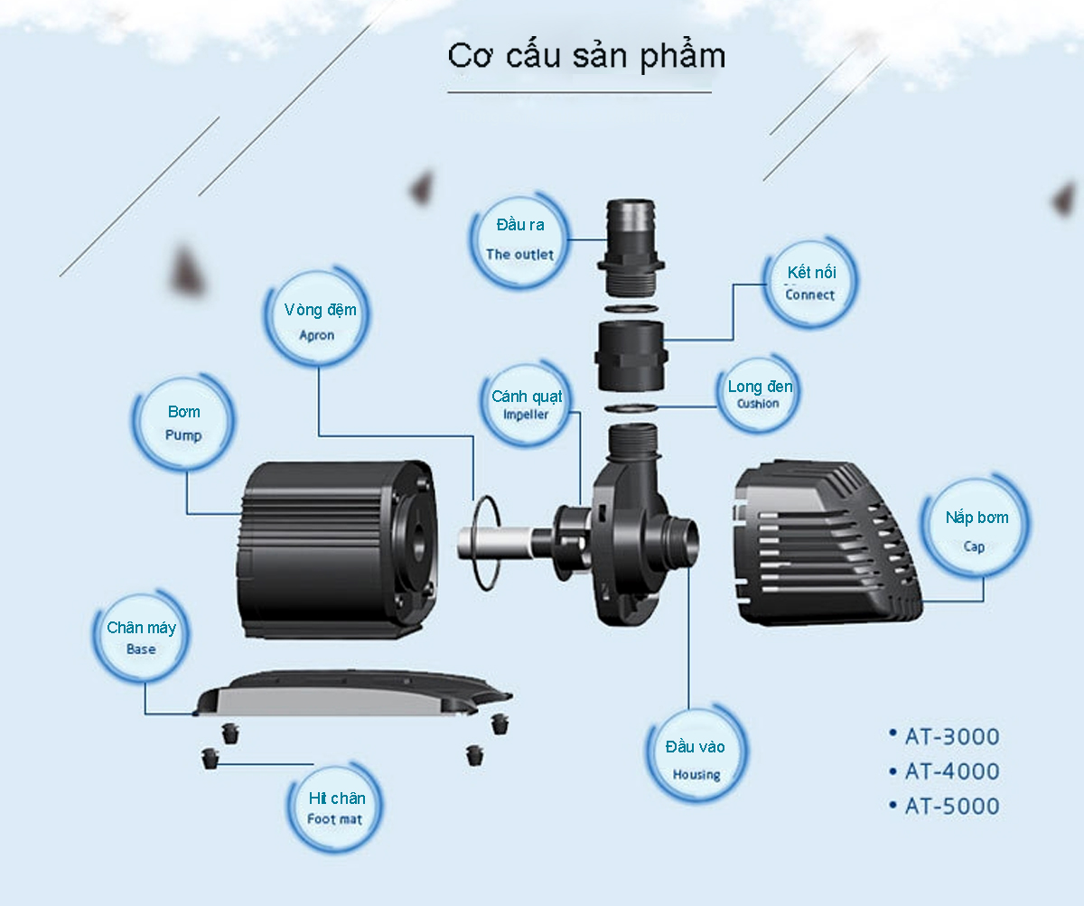 Máy bơm nước ATMAN AT3000 AT4000 AT5000 AT6000 AT8000 AT10000 là dòng máy bơm tiết kiệm điện đáng tin cậy và hiệu quả dùng để bơm nước, cấp nước cho các bộ lọc, ao cá, hồ cá, thác nước hoặc đài phun nước.