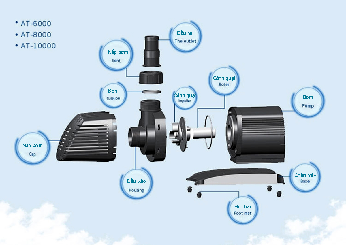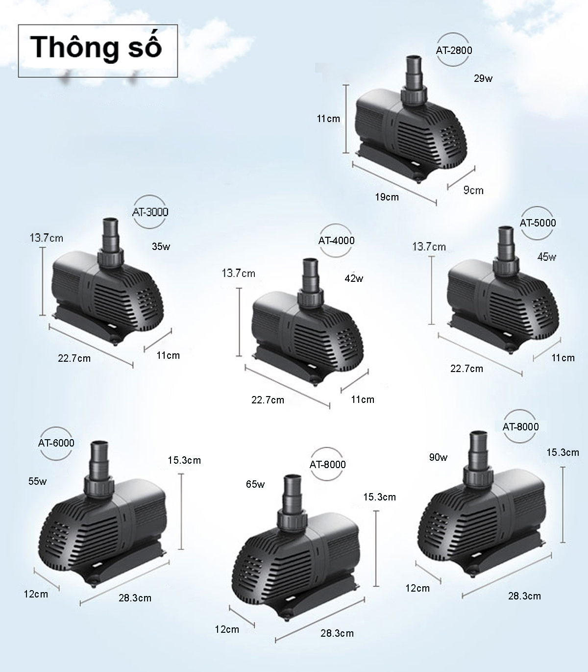 Máy bơm nước ATMAN AT8000 là dòng máy bơm tiết kiệm điện đáng tin cậy và hiệu quả dùng để bơm nước, cấp nước cho các bộ lọc, ao cá, hồ cá, thác nước hoặc đài phun nước.