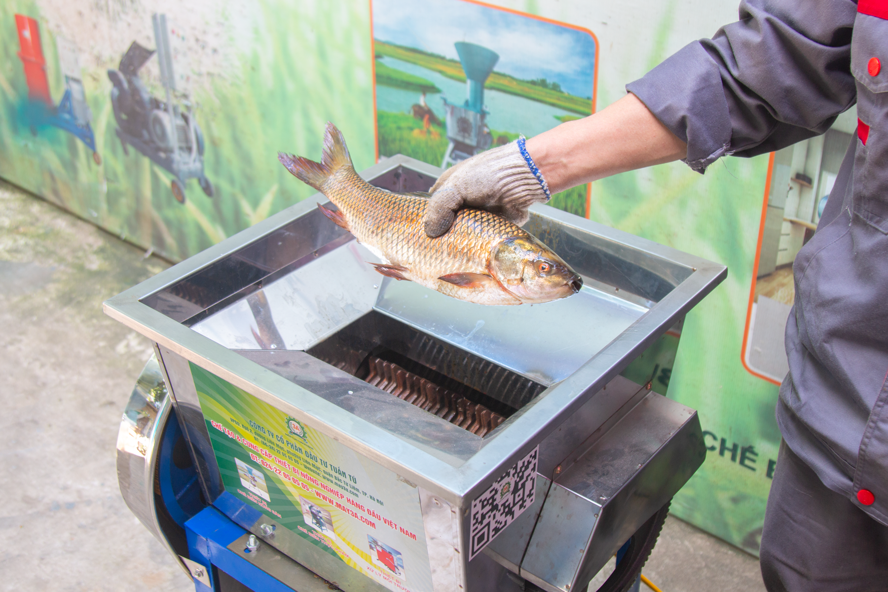 Để giúp các hộ chăn nuôi ba ba, cá chim, cá trê,… thái nhỏ các loại thức ăn như: cá mè nhỏ, cá tép dầu, cá lành canh, giun, ốc, ếch và phế phẩm từ
